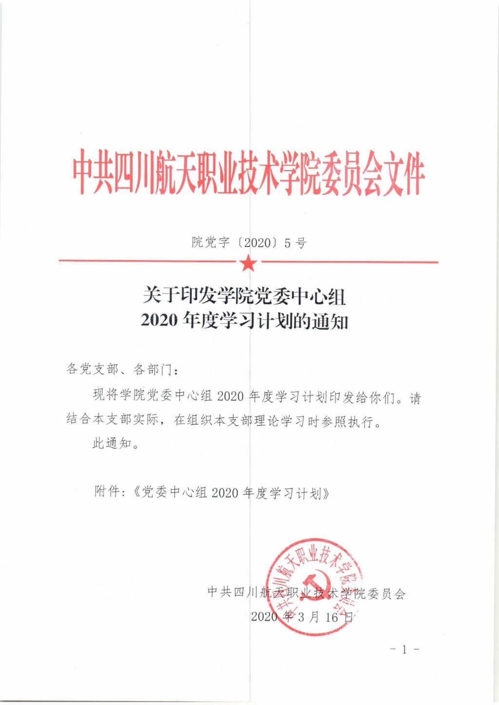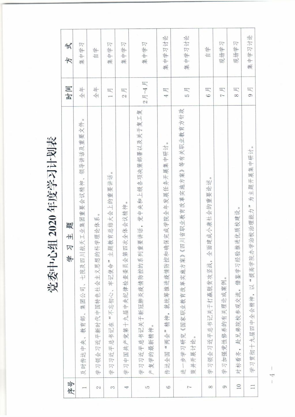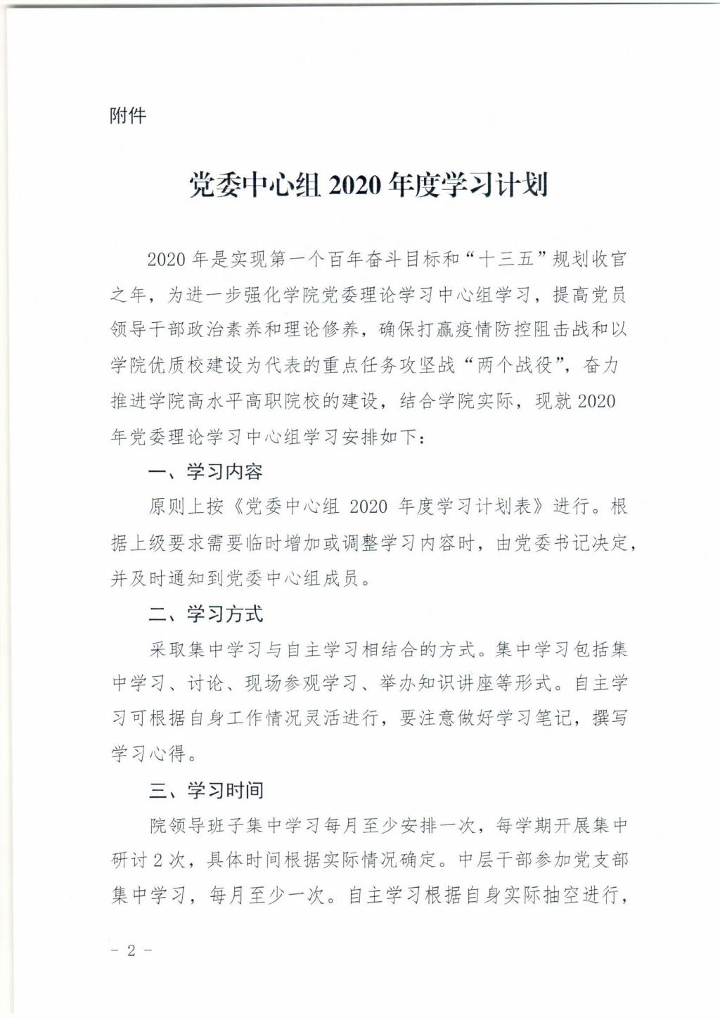 关于印发学院党委中心组2020年度学习计划的通知
