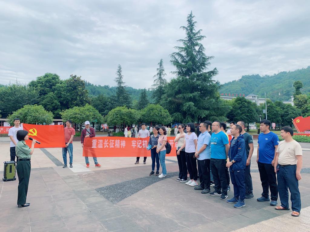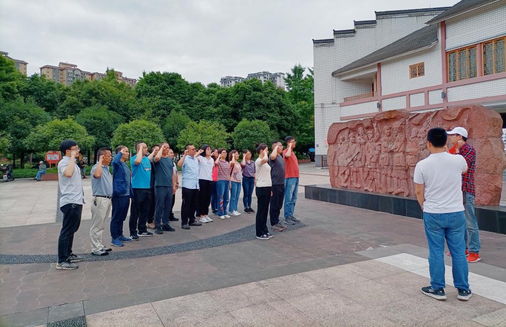 当天下午,大家继续沿着当年红四方面军长征走过的路线来到雅安市天全县。在纪念馆中,大家进一步了解了当年红军长征在藏区和陈云出川的艰险历程等相关历史。参观结束后,所有同志听工作人员上了一堂关于长征精神的微党课,并在纪念馆前面向党旗重温了入党誓词。