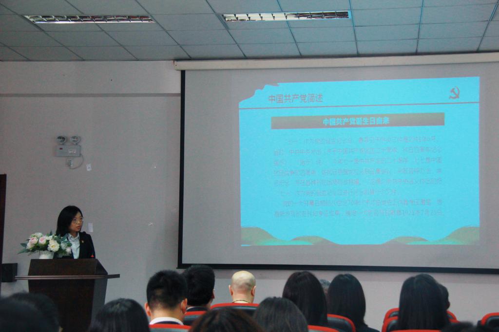 在重温入党誓词后,学院思政课教师唐红从何为中国共产党、中国共产党代表大会和只有中国共产党才能领导中国三个方面为大家讲授了题为《学党史,感党恩,跟党走》的微党课。