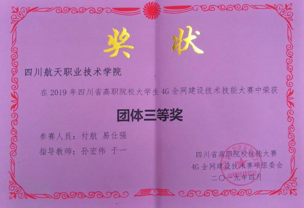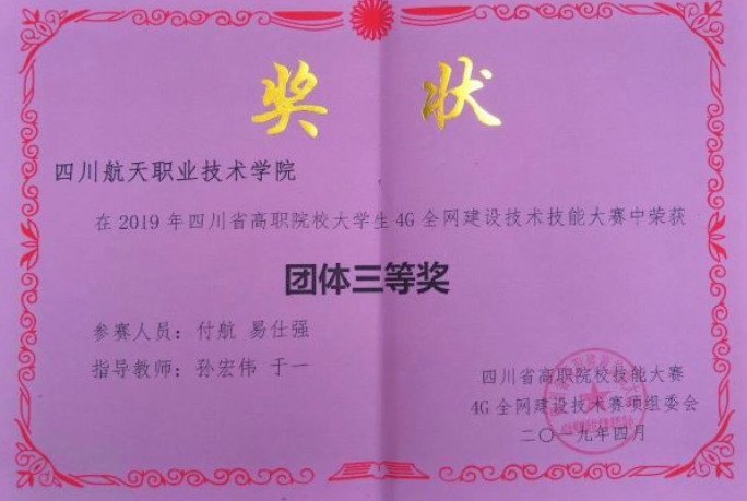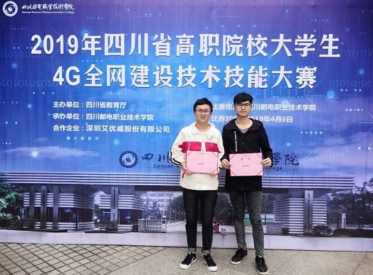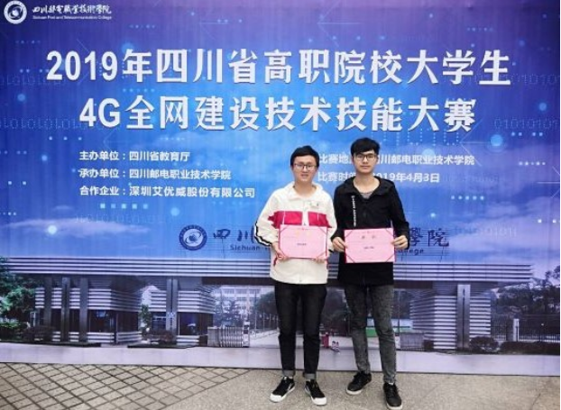 2019年4月3日,由省教育厅主办,四川邮电职业技术学院承办的四川省高职院校大学生4G全网建设技术技能大赛落下帷幕。参加此次比赛的有四川邮电职业技术学院、四川交通职业技术学院、四川信息职业技术学院、绵阳职业技术学院、乐山职业技术学院、南充职业技术学院等10所高职院校,19支代表队。我校是唯一以一个代表队参赛的院校,经过150分钟的理论考试、4G网络配置与优化、4G网络故障排除,电子工程系的付航和易仕强同学最后获得了四川省三等奖的荣誉。