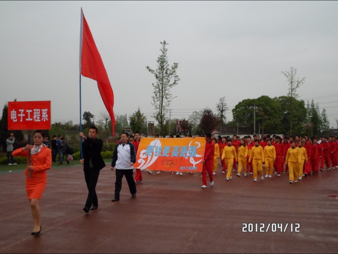 十大网投平台排名第八届春季田径运动会于2012年4月12日8点整在学院广汉校区隆重举行。我系党支部涂立刚书记带领着我系由500名学生组成的彩旗方队、运动员方队、学生方队和表演方队。他们踏着激昂的运动员进行曲、面带微笑、喊着嘹亮的口号、迈着整齐的步伐让我院领导检阅,深深的展现出我系同学的朝气与活力。