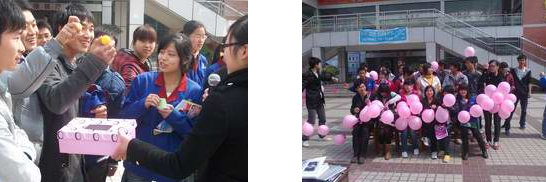 2011年春意盎然的三月,迎来女孩们的节日--女生节。 3月7日中午,由电子工程系主办,系团总支学生会女生部和生活部承办,面向全院的“今天她过节”主题活动在学院食堂外举行。本次活动分为许愿树、心愿桥、飞鸽传书三个环节。 同学们写下的心愿挂在选定的许愿树上,许愿树上飘动的便签传递的是对女生们的祝福。心愿桥,传递心愿,传递祝福,收获小礼品。通过抽乒乓球和回答问题的方式获得小礼品。 8 s& R$ A X' d2 X: m ^