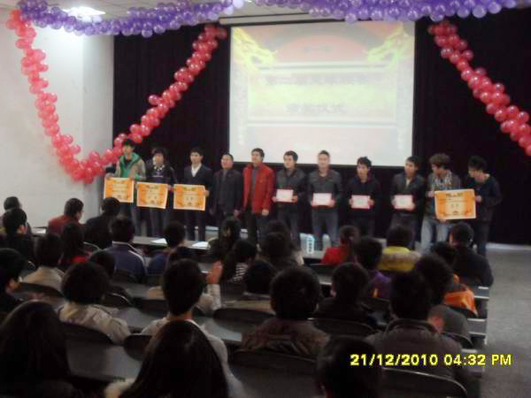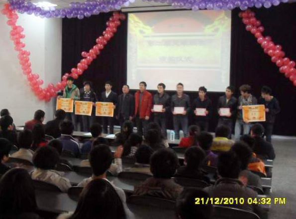 2010年12月21日下午4:20,学院电子工程系在明志楼二阶教室召开了系团总支学生会总结表彰大会。学院刘宏道副院长和陈宇副院长出席了本次会议并担任颁奖嘉宾;电子工程系周玉康主任、涂立刚书记、宋科副主任和该系辅导员以及200余名学生参加了本次会议。 会上首先由宋科副主任就本期团学工作作总结;随后系团学会主席王东升同学作团总支学生会工作发言;然后逐一进行了十项活动的颁奖仪式;最后涂书记作了讲话,涂书记对本期团学工作给予肯定并对新一学期工作提出了几点要求。 $ } ^0 T" c) W* d, _& {