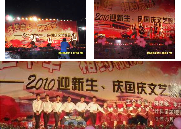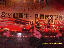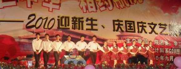 2010年9月29日晚,学院在三星堆校区举办了主题为“盛世中华,相约航院”迎新文艺晚会。电子工程系选送了三个文艺节目参演。三个节目分别是:男生6人街舞、男女生创意舞《新广播体操》和女生现代舞《舞爵》。男生街舞劲爆,女生现代舞火辣,新广播体操诙谐混搭。三个舞蹈充分展示了电子工程系学子舞蹈创作方面才华和舞台表演魅力。《新广播体操》节目表现尤为抢眼,引起现场观众多次欢笑声、欢呼声与热情掌声,成为当天晚会现场不折不扣的人气王。 & \8 ^5 \/ N+ U1 p0 G% \+ o