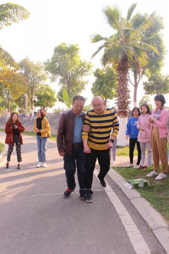 教师们到达活动地点后,开展教师集体活动。为了考验教师们的团队合作精神,教师们两两一组参与活动。各类有趣的游戏吸引着大家,有螃蟹赛跑、两人三足等。教师们都摩拳擦掌,跃跃欲试,欢笑声此起彼伏。
