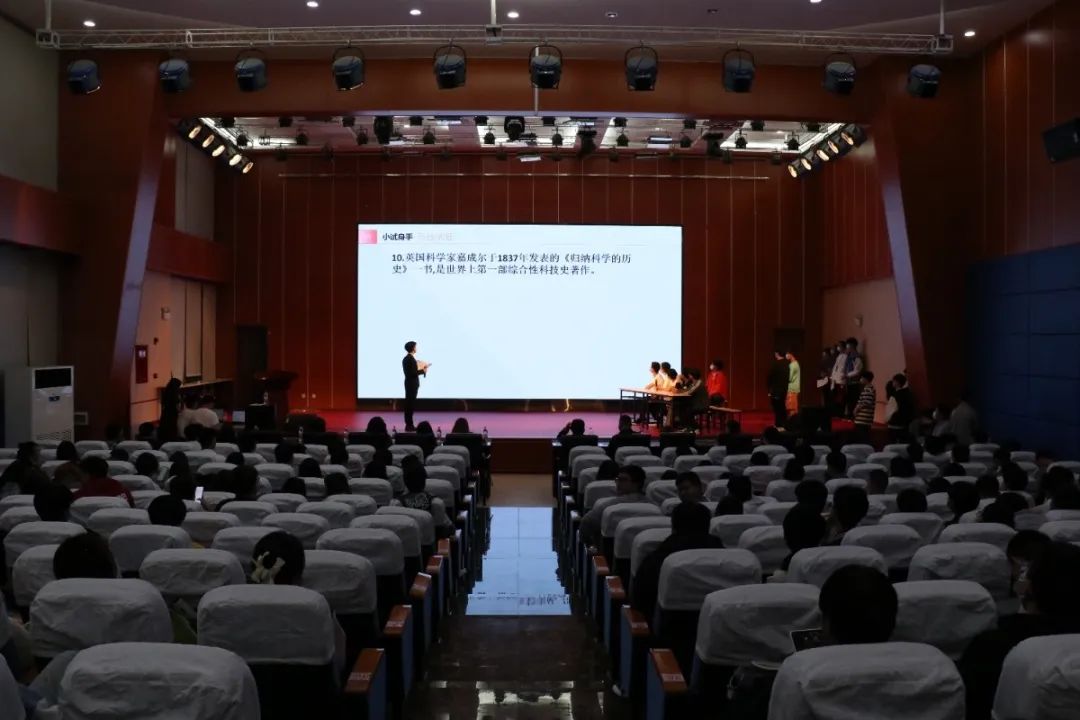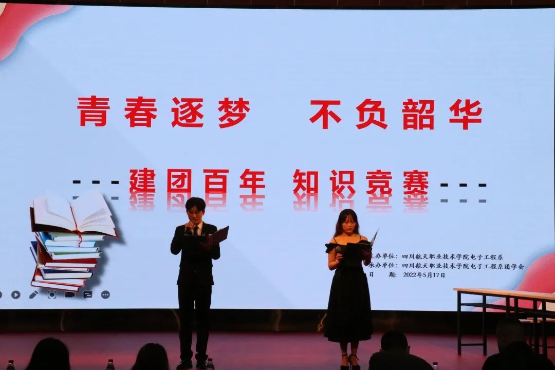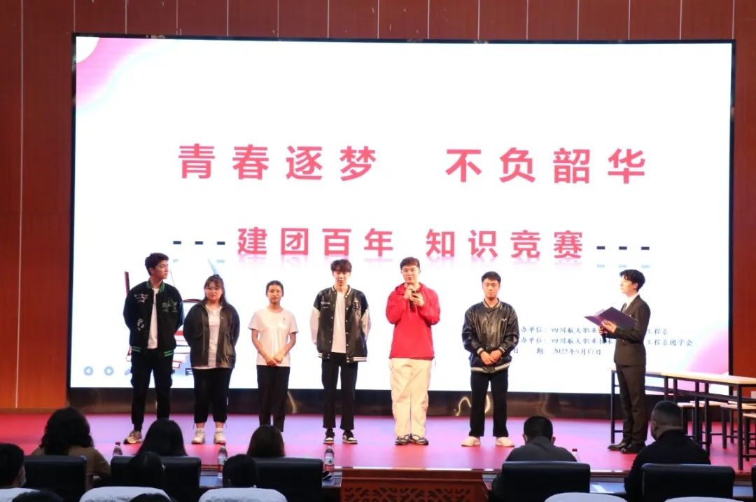 为营造浓郁校园学习氛围,丰富学生的校园文化生活,提高广大学生的}综合素质,加强系部的学风建设,展现系部学子风采,以“青春逐梦,不负韶华”为主题的建团百年知识竞赛决赛于5月18日晚19:30在学术报告厅开展。本次比赛共有六支队伍进入决赛,每个队伍的参赛代表轮流上台做简短的自我介绍。