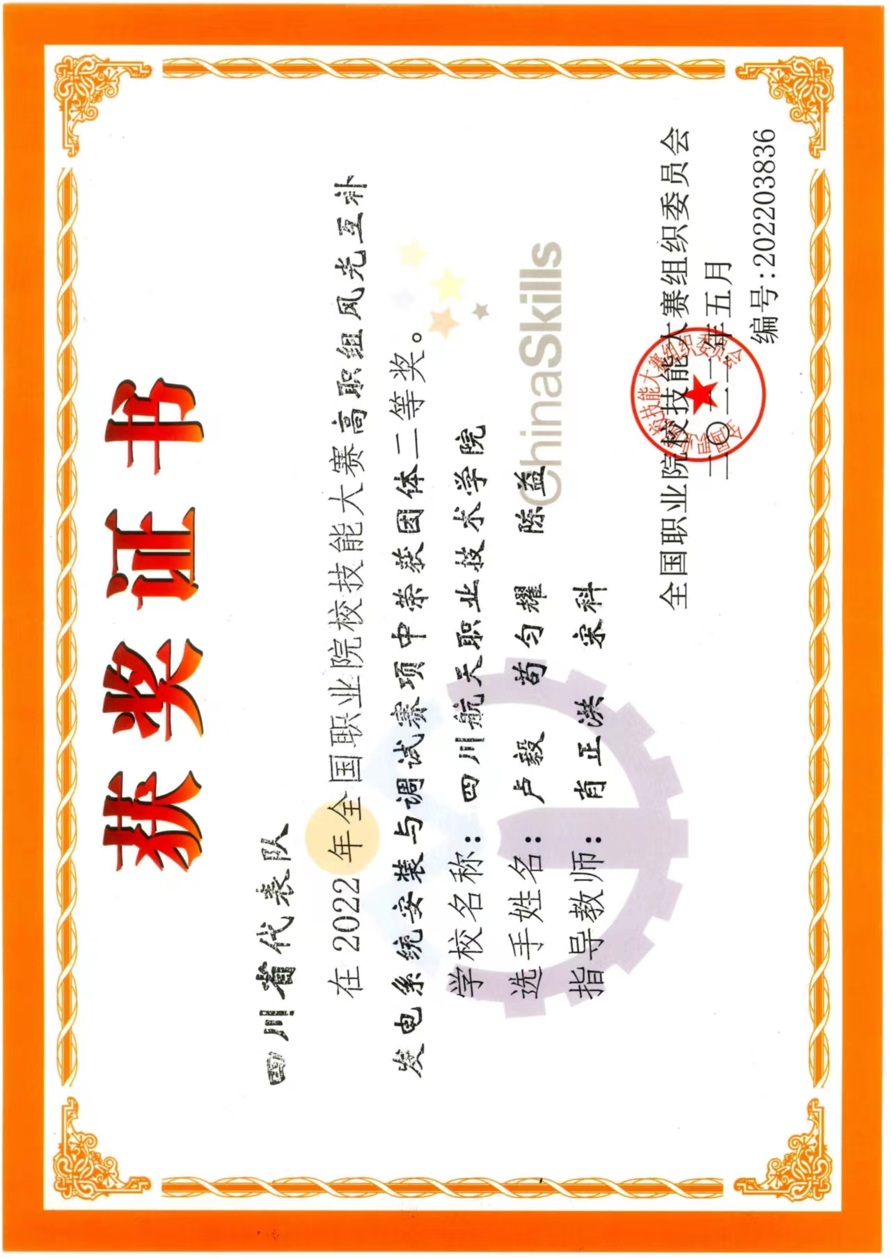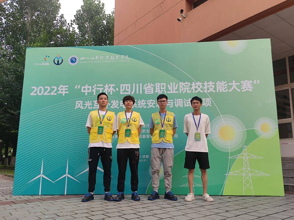 在2022年五月我们协会获得了四川省“现代电气安装与调试”比赛项目一等奖、二等奖。同年八月我们协会在四川省举办的“风光互补发电系统安装与调试”比赛项目中获得了二等奖的成绩,同一比赛项目,我们在全国的比赛中也获得了二等奖的优异成绩。