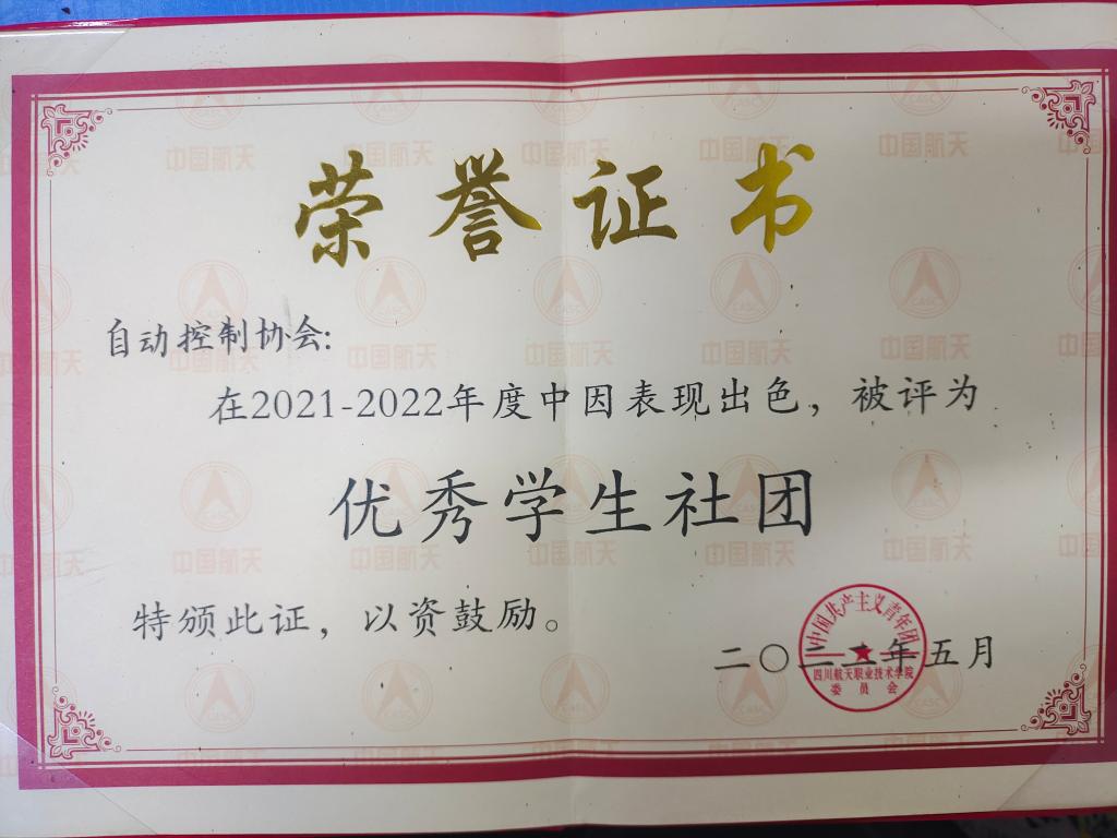 四川航天技术学院电子工程系自动控制协会,成立于2015年曾多次参与国家级省级各种技能竞赛,是一个集学术性、实践性于一体的学生社团,本会以理论学习为基础,以完善自我为目标,以社会实践为载体,努力提高本会同学对自动化及相关知识的认识和实践能力。曾连续获得2021年,2022年荣获学校“优秀社团”荣誉称号,现有成员24名,指导教师:宋科、肖正洪、欧金林。