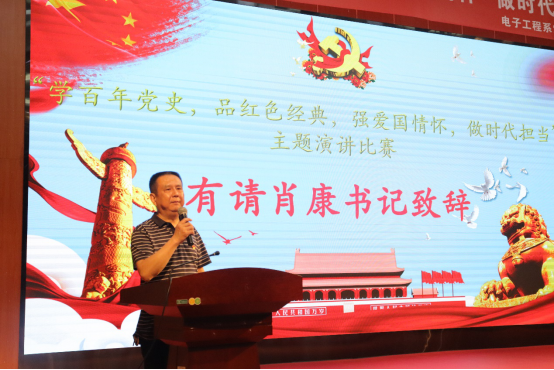 肖康书记在主题演讲比赛后做分享交流:2021年喜迎中国共产党建党一百周年,是实现“两个一百年”中第一个一百年目标的重要时刻,国家全面实现精准扶贫,迈步奔向美丽小康!在这个辉煌的历史时刻,作为中国当代的新青年应该“学百年党史,品红色经典,强爱国情怀,做时代担当”,爱党、爱国、爱人民,做新时代的优秀青年。时刻铭记“没有共产党就没有新中国,没有共产党就没有新时代发展强盛的新中国!” 作为新时代青年的要肩负起时代的重任,为国家的繁荣富强做出贡献。