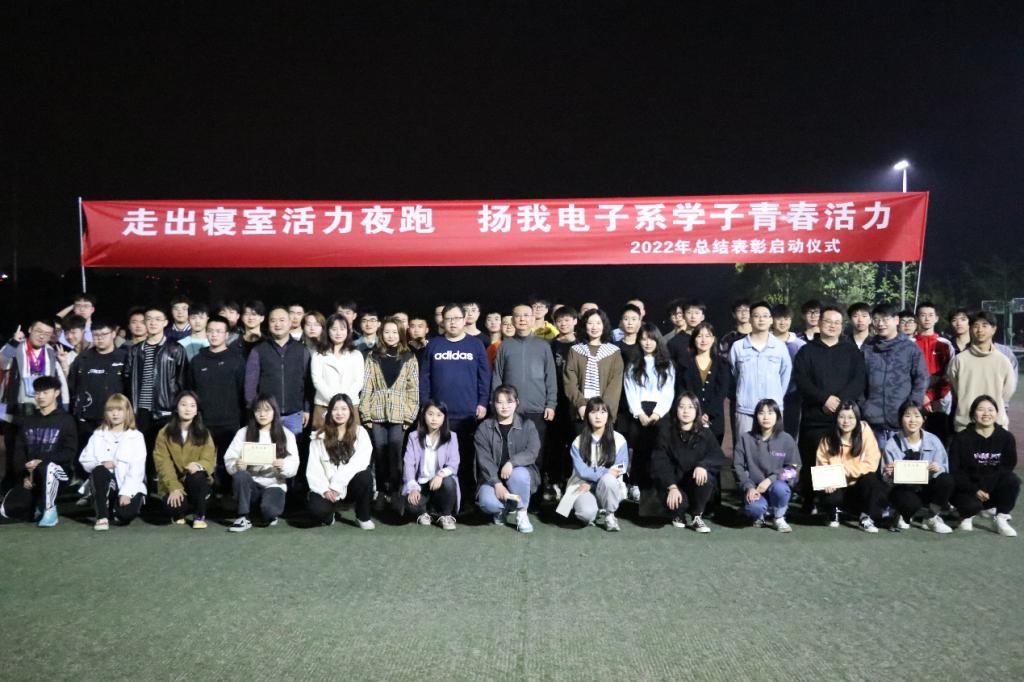 “电子工程系第六届活力夜跑总结表彰大会暨第七届活力夜跑开幕式”活动现场中,电子工程系宋科主任对上一届活力夜跑优秀组织者、优秀工作人员、优秀班级、优秀个人等名单进行了宣读并与肖康书记给同学们颁奖并合影留恋。其后先进个人代表范雪柔同学发言,李峻同学做第六届活力夜跑总结及第七届活力夜跑规划。活动最后肖康书记上台分析了当前疫情情况,并鼓励同学们走出寝室去抛洒青春的汗水,去迸发属于自己的青春活力。