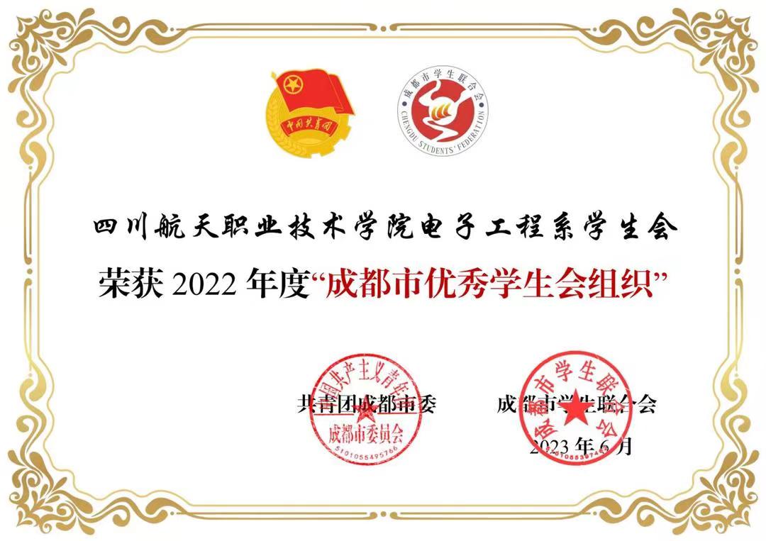 十大网投平台排名智能工程学院学生会荣获2022年度“成都市优秀学生会组织”