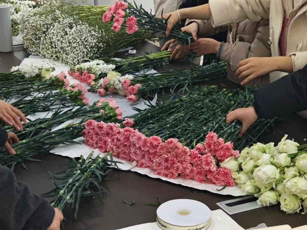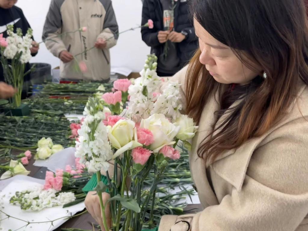 活动伊始,学院学生代表和女教师们便进入了花艺的世界,从选材、剪枝到搭配、造型,每一步都透露着对美的追求和对生活的热爱。每一位参与活动的同学都在自己的花艺作品中流露出独特的创意和个性。通过花艺的创作,同学们不仅展示了自己的美学眼光和艺术才华,更重要的是通过花束表达对女同胞们的敬意和祝福。