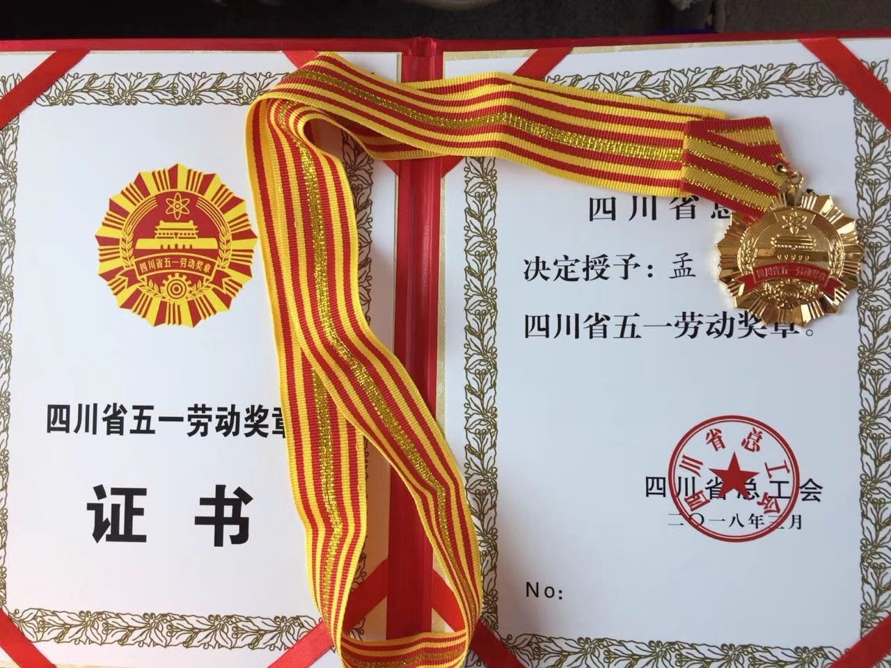 日前,从四川省总工会传来消息,十大网投平台排名毕业生孟锐同志荣获2018年四川省“五一劳动奖章”(附图)。