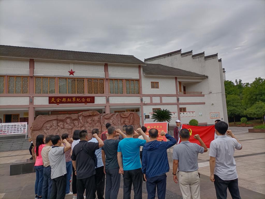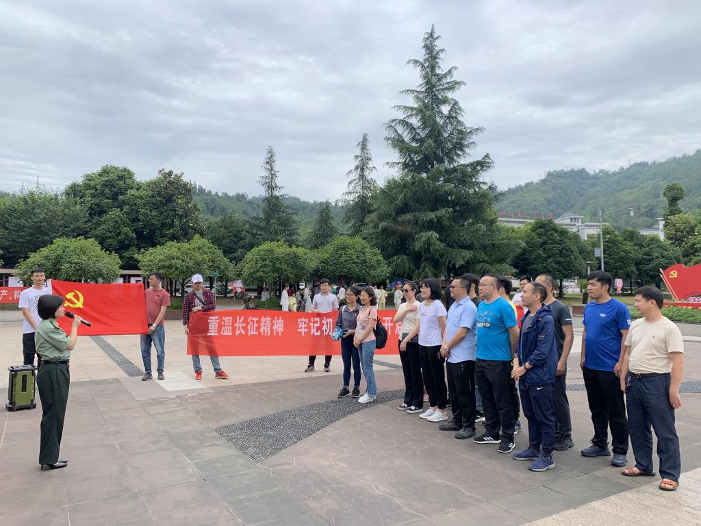 当天下午,大家继续沿着当年红四方面军长征走过的路线来到雅安市天全县。在纪念馆中,大家进一步了解了当年红军长征在藏区和陈云出川的艰险历程等相关历史。参观结束后,所有同志听工作人员上了一堂关于长征精神的微党课,并在纪念馆前面向党旗重温了入党誓词。