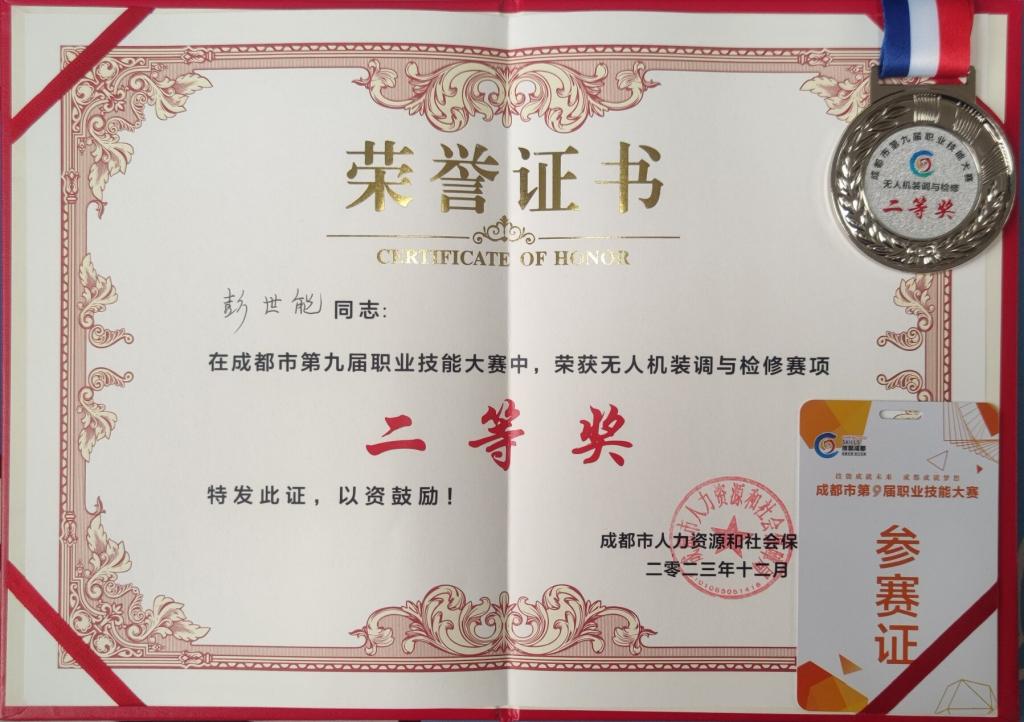 12月6日,成都市第九届职业技能大赛在温江区交通职业技术学院开幕,本届大赛由市人社局等多个部门主办,温江区人社局和市职建中心承办。我校飞行器制造学院教师彭世能和G22飞行器数字化制造技术4班学生朱能华均获得第二名的好成绩。