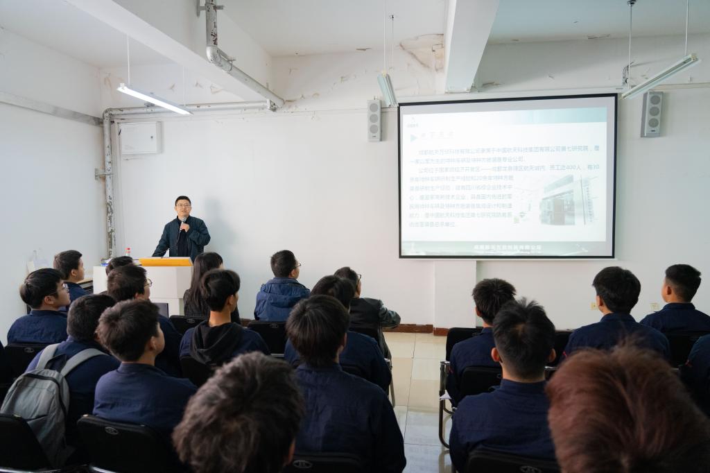 为积极推进校企合作,促进学生高质量就业,学校联合成都航天万欣科技有限公司(以下简称航天万欣)建立“航天万欣地面装备工匠班”。3月20日上午,在学校三星堆校区劝学楼南204教室内举行了“航天万欣地面装备工匠班”宣讲会,并完成了现场面试工作。学校副校长戚焱,就业处副处长唐小强、杜俊鹏,飞行器制造学院副书记刘琪、航天万欣副总经理杨霖、航天万欣相关部门负责人以及150余名学生参加了宣讲会。