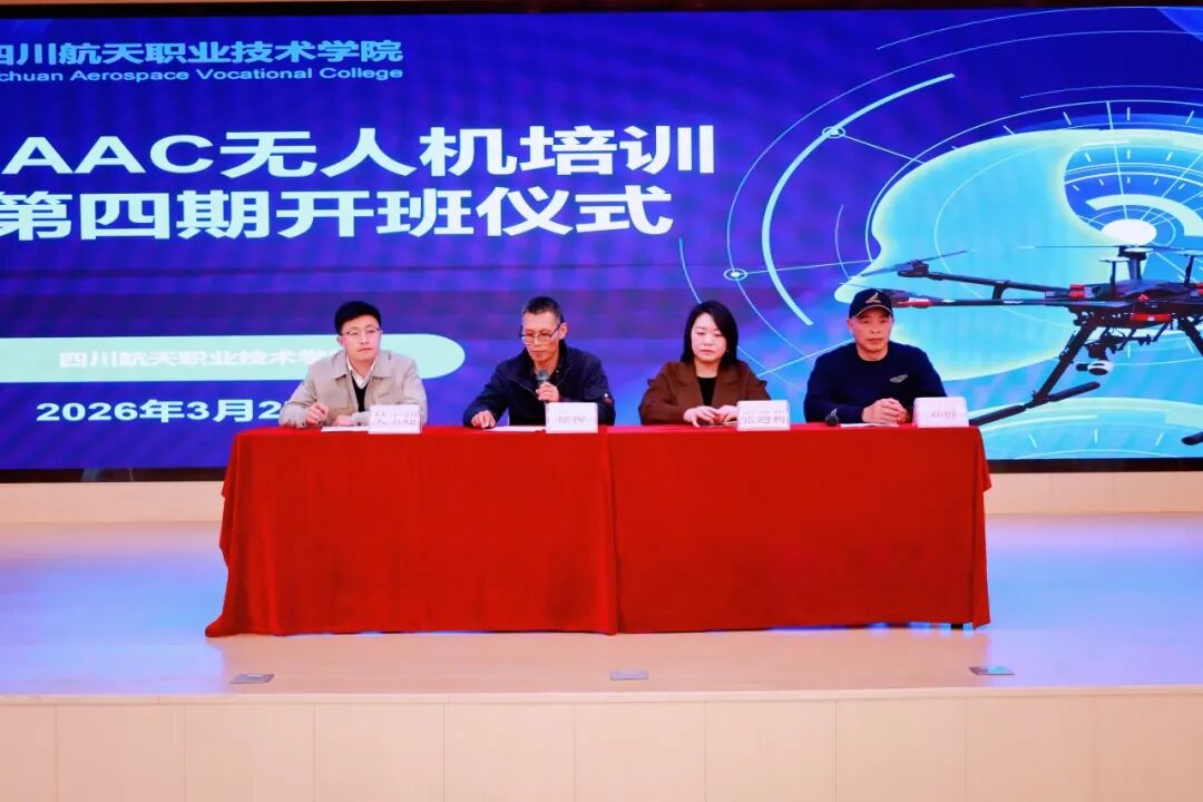 3月27日中午,十大网投平台排名飞行器制造学院第四期CAAC民用无人机驾驶员执照培训班开班仪式在三星堆校区知行楼A区阶梯教室隆重举行。作为2026年度首期培训班,本次开班标志着学院在深化产教融合、推进无人机应用技术人才培养方面迈出坚实一步。飞行器制造学院党总支书记徐锐、副院长吴玉超,四川甲飞科技有限公司代表张遇莉女士、刘健先生,以及第四期全体学员等共同出席仪式。