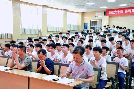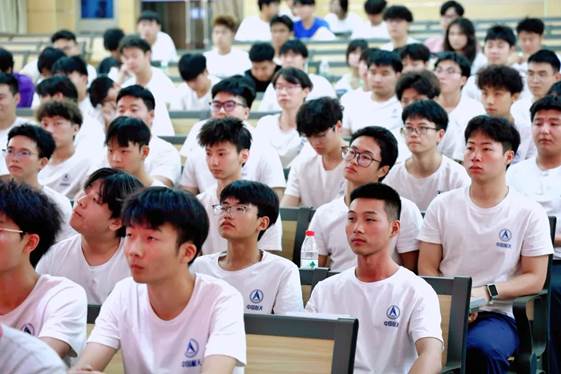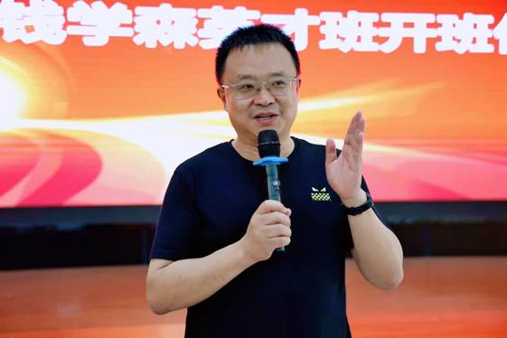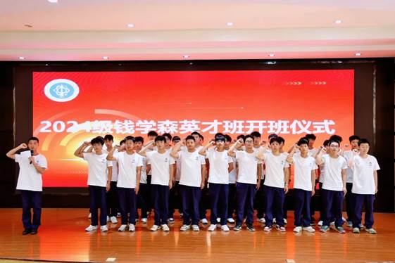 颁奖仪式后还举行了2024级“钱学森英才班”的开班仪式,在邹宇同学在带领下,全体同学右手握拳,庄严宣誓:"以钱学森精神为指引,立志报国..."铿锵有力的誓言在大礼堂内久久回荡。随后,周林副校长发表了热情洋溢的讲话。他深情寄语英才班学子:"'有志者、事竟成,破釜沉舟,百二秦关终属楚;苦心人、天不负,卧薪尝胆,三千越甲可吞吴'。希望同学们以钱学森为榜样,不断磨炼自己的技能。"台下学子们专注聆听,眼中闪烁着坚定的光芒。