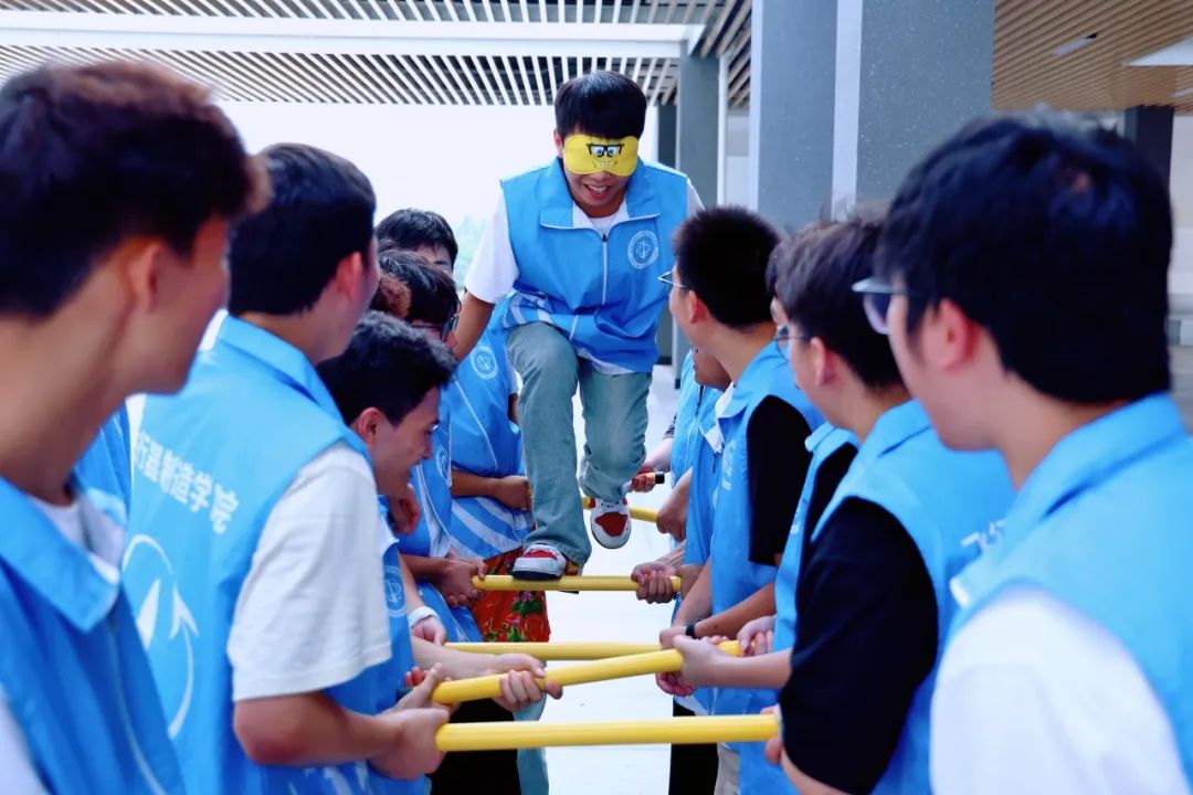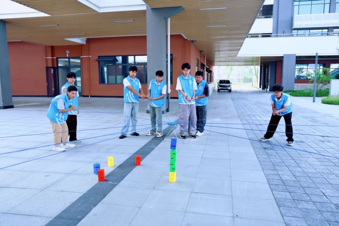 在“同心鼓”环节中,队员们通过不断调整力度与节奏,共同完成击球目标;“合力建塔”则要求团队精准分工,确保积木平稳搭建;“信任天梯”通过蒙眼攀梯挑战,进一步强化了队员间的相互协作。活动现场气氛热烈,队员们热情高涨,展现出积极向上的精神风貌。