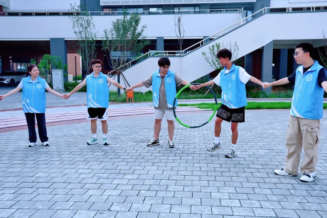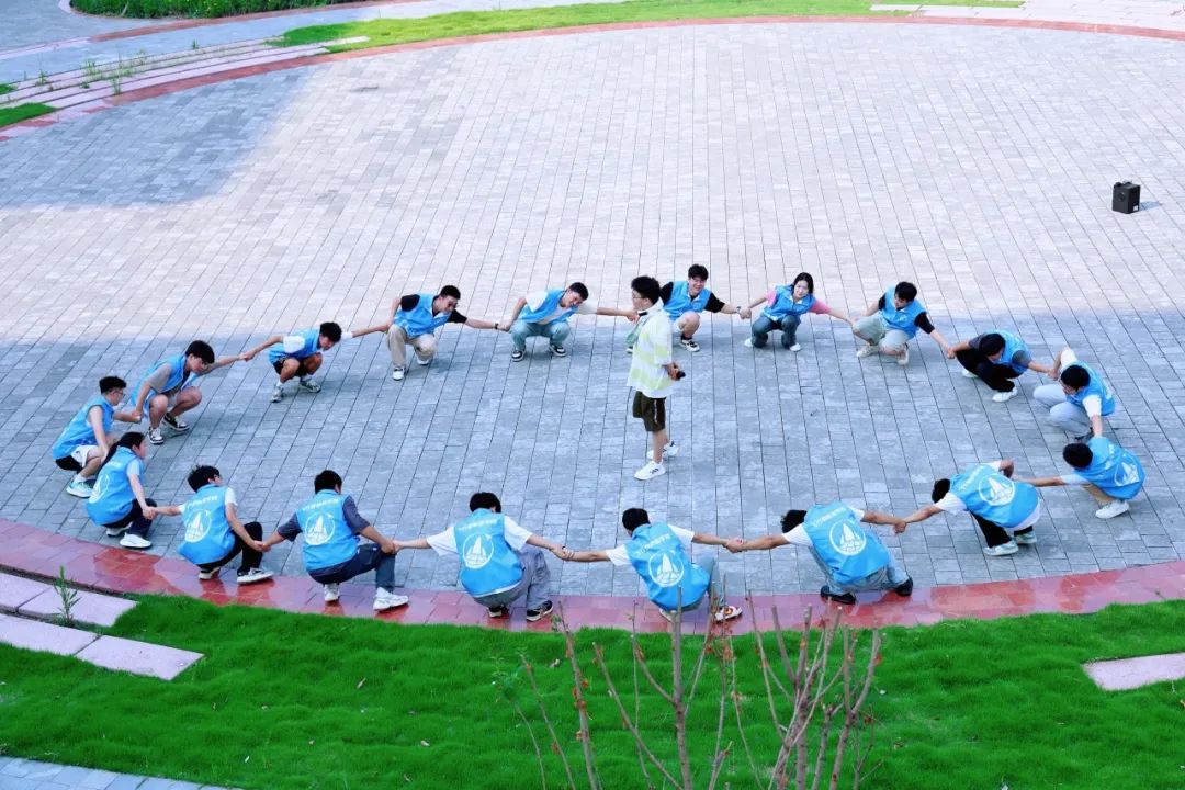 培训伊始,张皓南老师强调了团队协作在实践活动中的重要性,希望队员们通过本次培训增进默契、激发潜能,为后续社会实践的顺利开展奠定基础。随后,队员们分组参与了“同心鼓”“合力建塔”“彩虹伞”“信任天梯”“隔空传杯”“花开花落”“一圈到底”等系列团队协作游戏。这些活动既考验了队员们的沟通协调能力,也培养了彼此间的信任与配合意识。