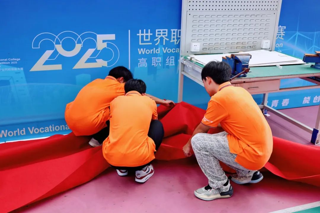 目前,赛场搭建与布置工作正在志愿者的协助下高效、有序地进行。全体工作人员和志愿者正以最高的标准和最足的干劲,静待八方来客,共同期待2025年世界职业院校技能大赛高职组“航空交通运输”赛道比赛的精彩启幕。
