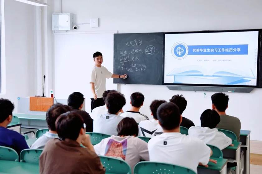 姚雨霖同学目前就职于东方电气风电股份有限公司,作为刚刚从校园步入职场不久的优秀学长,他结合自身在公司的实际工作经历与成长体会,向在场的学弟学妹们进行了详尽的分享。分享内容聚焦于职业发展路径与公司福利待遇等订单班同学深切关注的问题。