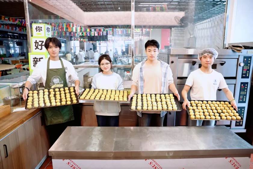经过短暂的烘烤,金黄饱满、香气四溢的月饼新鲜出炉。同学们纷纷品尝自己的劳动成果,分享彼此的制作心得。有同学表示:“第一次亲手制作月饼,从原料到成品,这个过程太有成就感了!不仅学会了新技能,更感受到了传统文化的魅力。”还有同学谈到:“和同学们一起做月饼,分享品尝,感觉特别温暖,就像提前过了一个团圆节。”