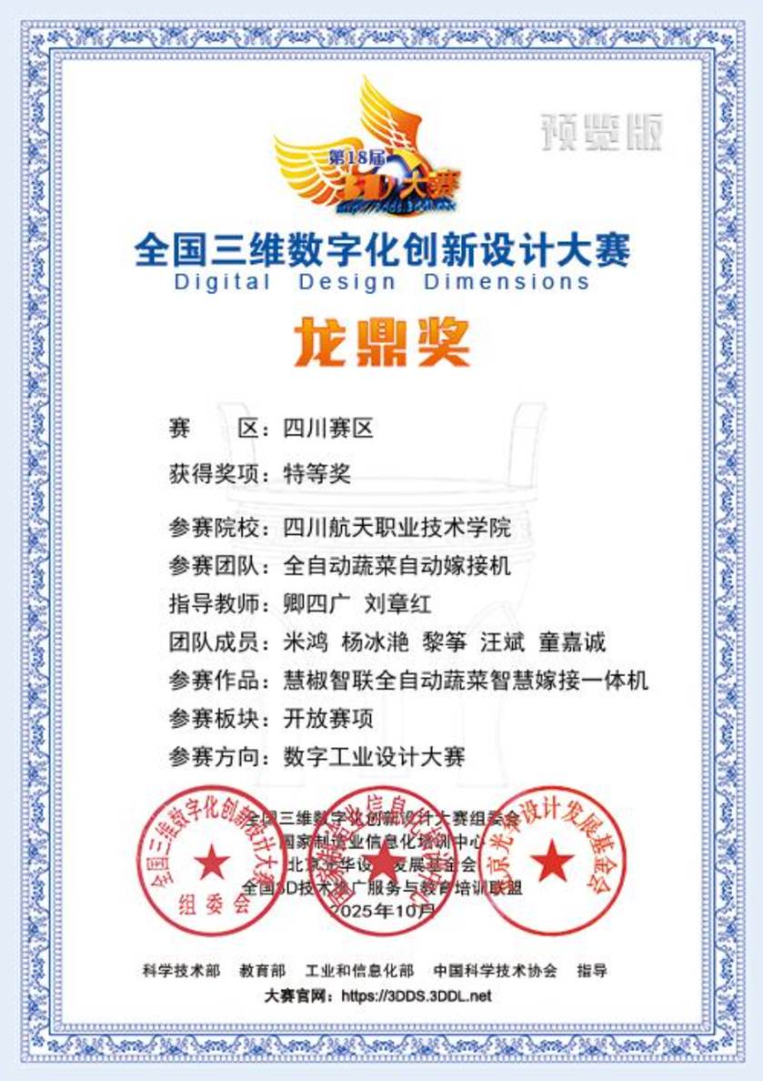 我校学子凭借扎实的专业功底、出色的创新设计与优秀的团队协作,在众多参赛者中脱颖而出,最终收获8项大奖,获奖数量与质量均位居省内前列。尤其值得关注的是,本次获奖作品中涌现出多项具有实际应用前景的全新发明,体现了飞行器学院在引导学生开展科技创新、实现成果转化方面的持续努力与丰硕成果。