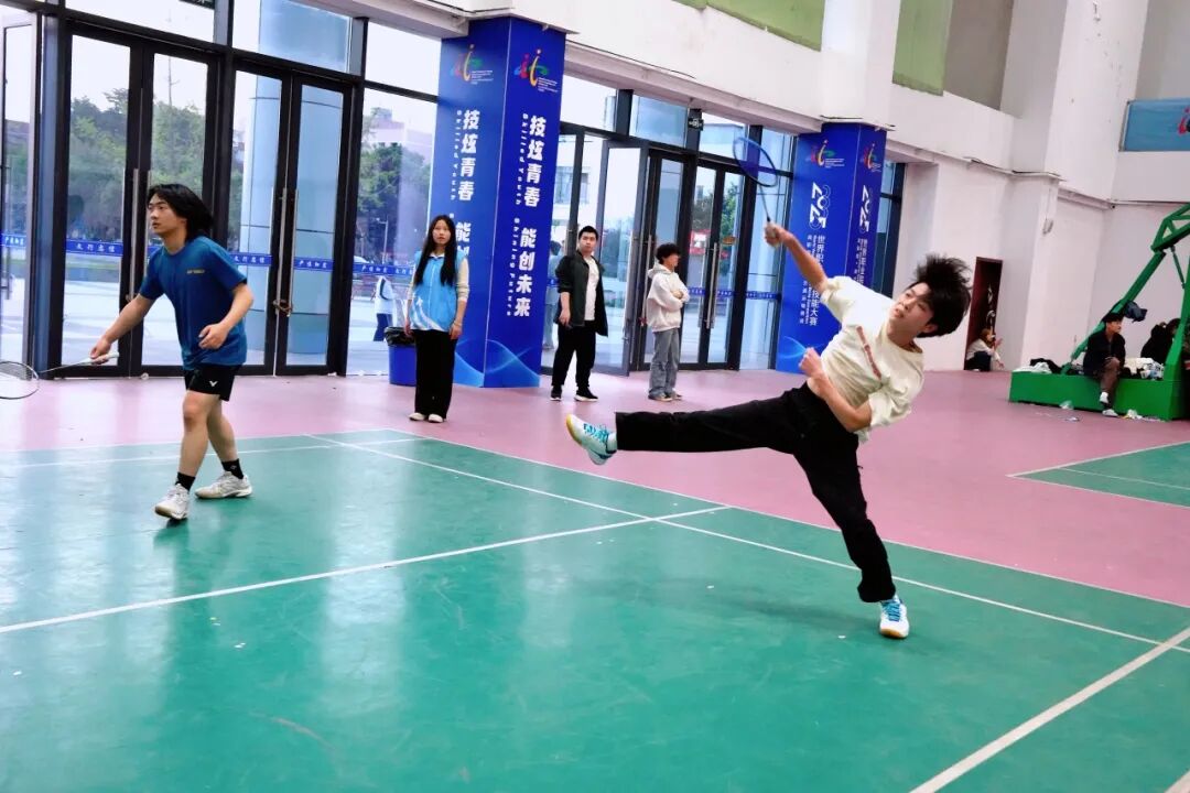 赛场上,球拍起落,白羽飞扬,青春的热浪席卷整个赛场。选手们以饱满的热情、敏捷的身手和顽强的意志,展开了多轮激烈角逐。每一次精准的扣杀、巧妙的吊球与默契的配合,都赢得了现场观众的阵阵喝彩,充分展现了学院学子敢于拼搏、团结协作的优良品质。经过激烈比拼,各项目奖项逐一揭晓。混合双打项目中,刘于铭、肖逍组合凭借出色发挥摘得桂冠,赖虹、刘棋燕组合荣获亚军,王爽、刘艺豪组合获得季军。男子单打项目中,刘艺豪技压群雄夺得冠军,赖虹、肖逍分获亚军和季军。