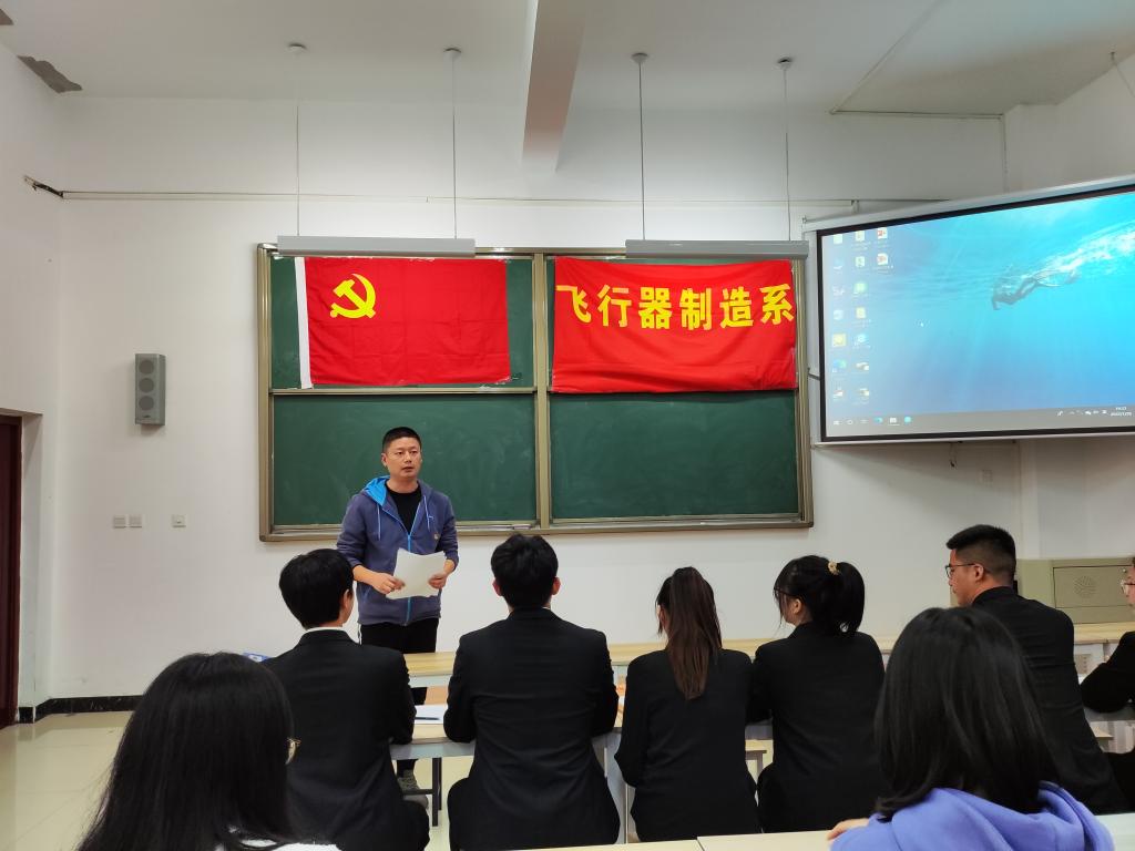 2022年10月26日下午,飞行器制造系在学院三星堆校区文汇楼106教室组织召开党支部会议,全体党员同志和16名预备党员参加会议。会议由系党支部副书记刘琪主持。