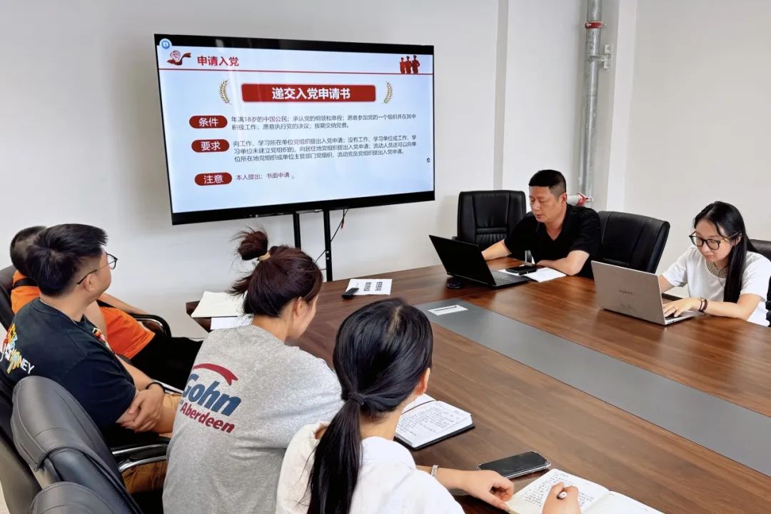 会议聚焦规范流程,夯实党建基础,以《中国共产党发展党员工作细则》为根本遵循,围绕“申请入党、入党积极分子确定和培养教育、发展对象确定和考察、预备党员接收、预备党员教育考察和转正”五大阶段展开系统讲解。刘书记结合以往党员发展中出现的实际案例,重点解析了“双推优”机制实施要点、思想汇报撰写规范、政治审查关键环节及档案材料审核标准,并针对“线上思想汇报真实性核查”“发展对象公示期异议处理”等实务难点提供操作指南。
