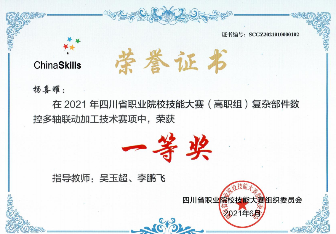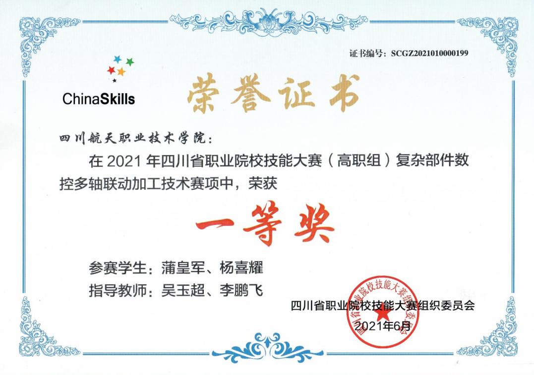 近日,由四川省教育厅主办的“2021年四川省复杂部件数控多轴联动加工技术技能竞赛”,在四川航天职业技术落下帷幕,来自省内各职业院校的选手同台竞技,展现风采。经过两天的激烈角逐,我校李鹏飞、吴玉超两位老师指导的航天工匠班同学杨喜耀、蒲皇军取得本次技能竞赛第一名。