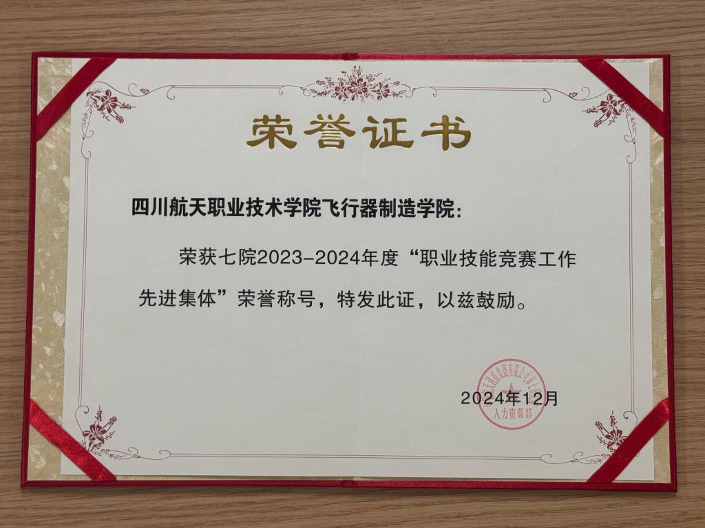 近日我校再传喜讯,学校飞行器制造学院荣获七院2023-2024年度“职业技能竞赛工作先进集体”荣誉称号。此荣誉的颁发是航天科技集团第七研究院对飞行器制造学院技能培训、技能竞赛和赛事承办工作的充分肯定。