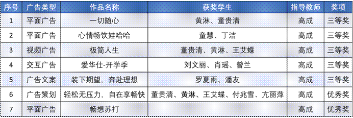 在9月进行的由四川省教育厅主办、四川大学承办的2020第12届全国大学生广告艺术大赛上,G18市场营销专业学子荣获四川赛区5个三等奖、2个优秀奖。