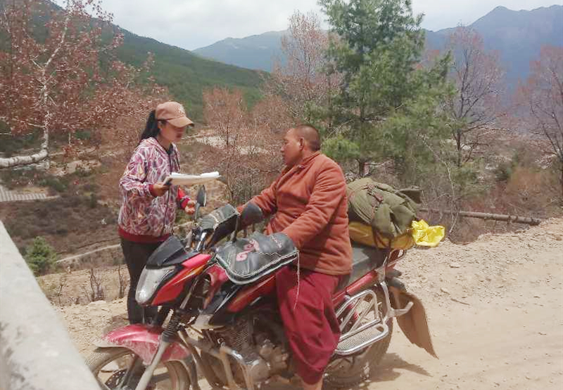冲在救灾支援的前方,还有晏玲、刘厚丽、孙跟拉姆、李洋,同学们都积极的参与志愿者活动,为西昌山火救灾奉献自己的力量。他们和同行志愿者们一起打包食物、发放矿泉水等补给物资,同时也协助组装喷雾器供救火队伍使用。火势被控制得当时,和队员一起针对山上的起火点,进行清理,排除隐患。杨意兰、马娇兰两位同学在卡点执勤负责检查卡点的过往车辆做登记,检查是否携带有火源进来,提醒每个驾驶员减速慢行,对行人进行护林防火知识宣传。每日下午进行巡山,下山后做好记录登记,并协助村长宣传护林防火知识。