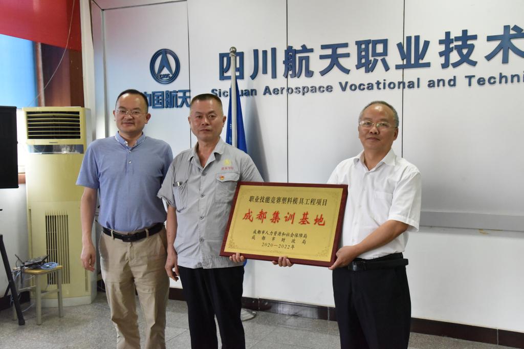 颁奖完毕后陈宇副院长宣读了《成都市人力资源和社会保障局关于公布2020年度成都市职业技能竞赛集训基地建设项目的通知》,并进行了授牌仪式,刘家騑院长为具体承担项目建设的飞行器制造系和实训教学部进行了颁发了职业技能竞赛塑料模具工程项目成都集训基地挂牌;随后,部门负责人分别就各自部门项目建设情况、教练队伍组建以及选手选拔和集训情况做了汇报。刘院长要求两个部门积极备战,制定详尽的训练计划,争取优异成绩,不辜负上级单位和学院的期望。