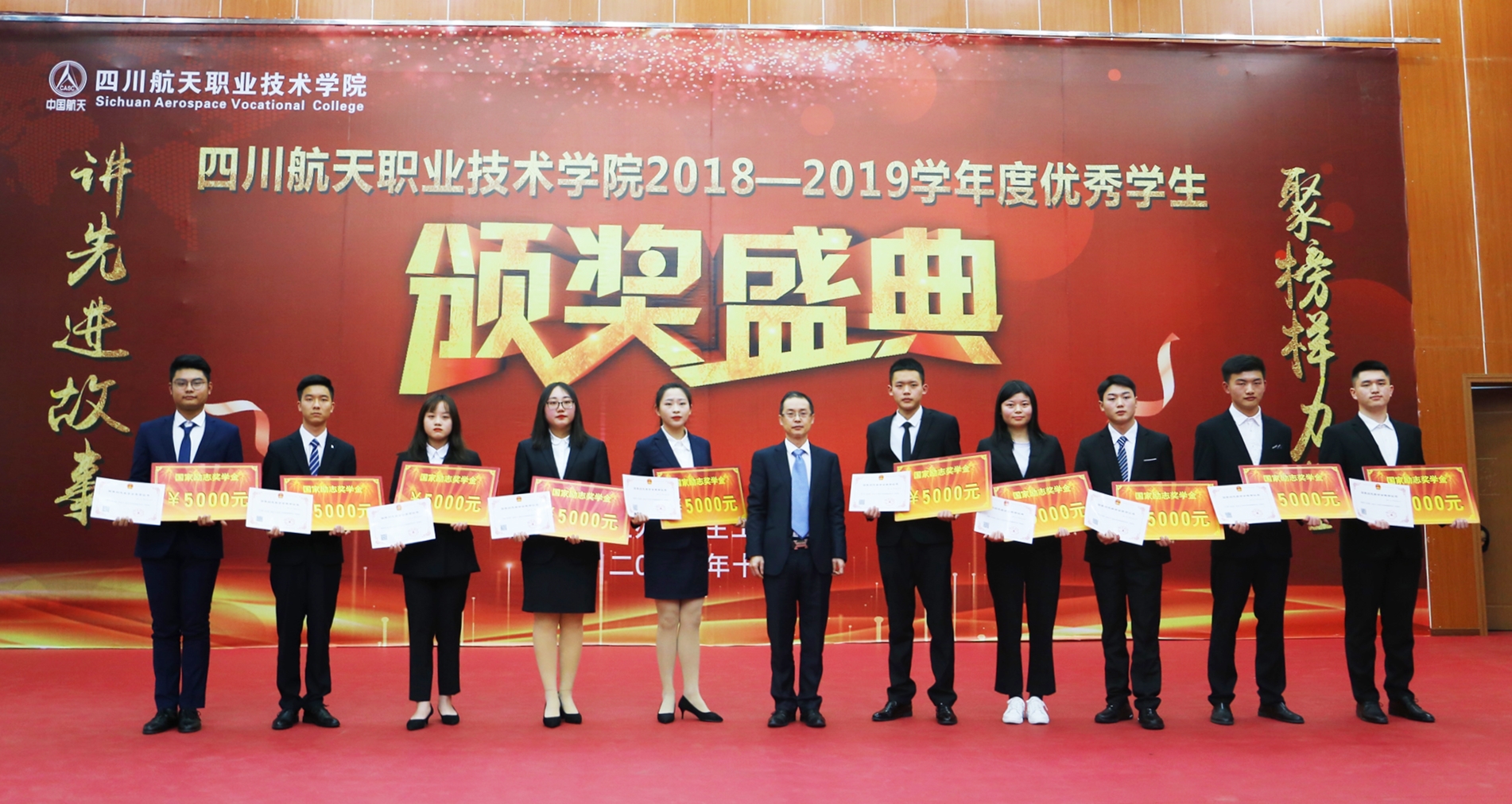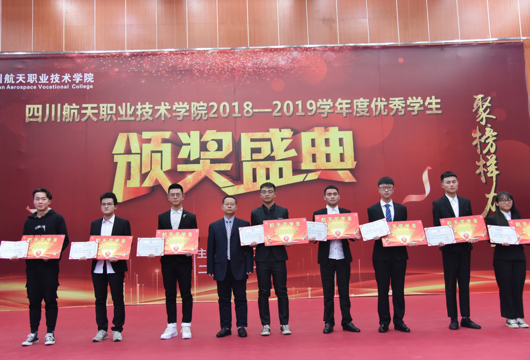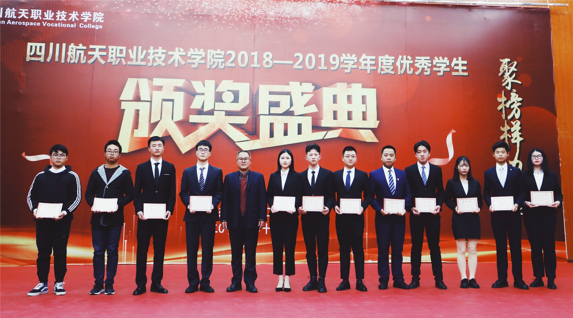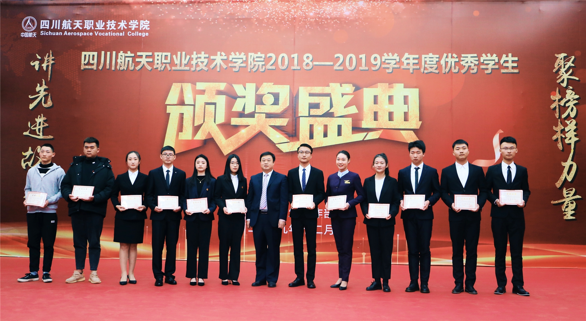 2019年12月19日下午3点,十大网投平台排名2018-2019学年度优秀学生表彰大会暨国家奖学金、励志奖学金及航天奖学金颁奖典礼在广汉校区图书馆学术报告厅隆重举行。学院院长刘家騑、党委书记黄茂才,副院长夏华、刘宏道,党委副书记、纪委书记秦勇,各系部领导以及老师和学生代表近400人参加了此次颁奖典礼。
