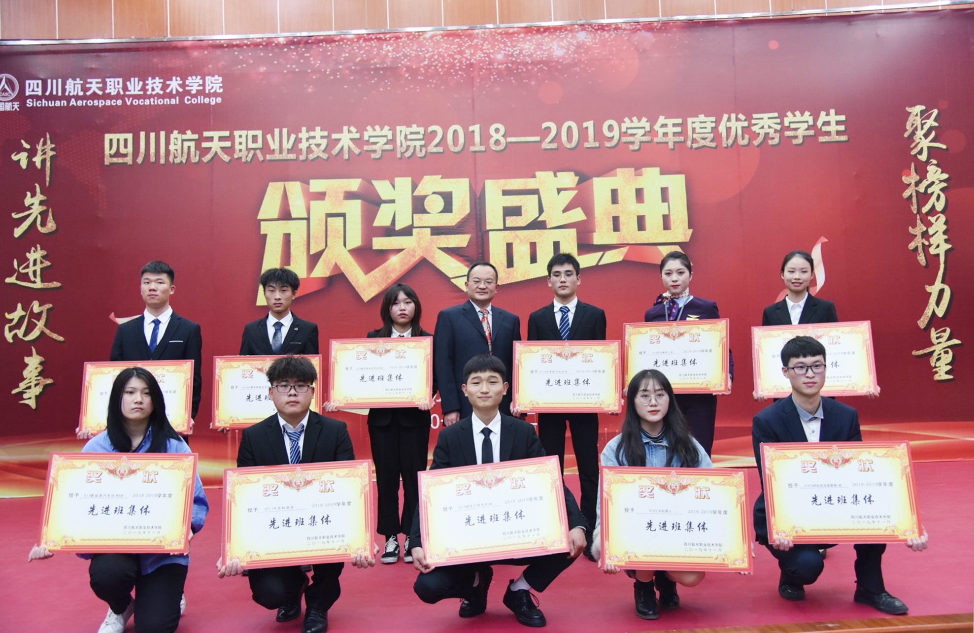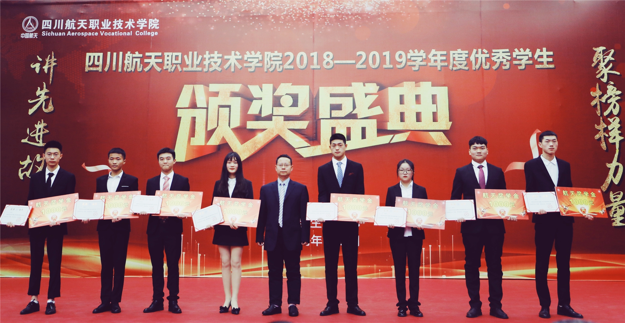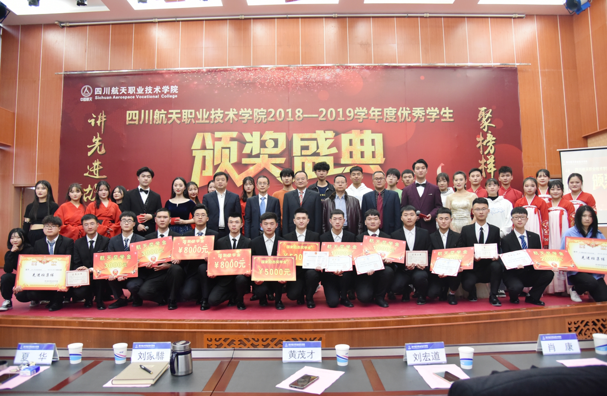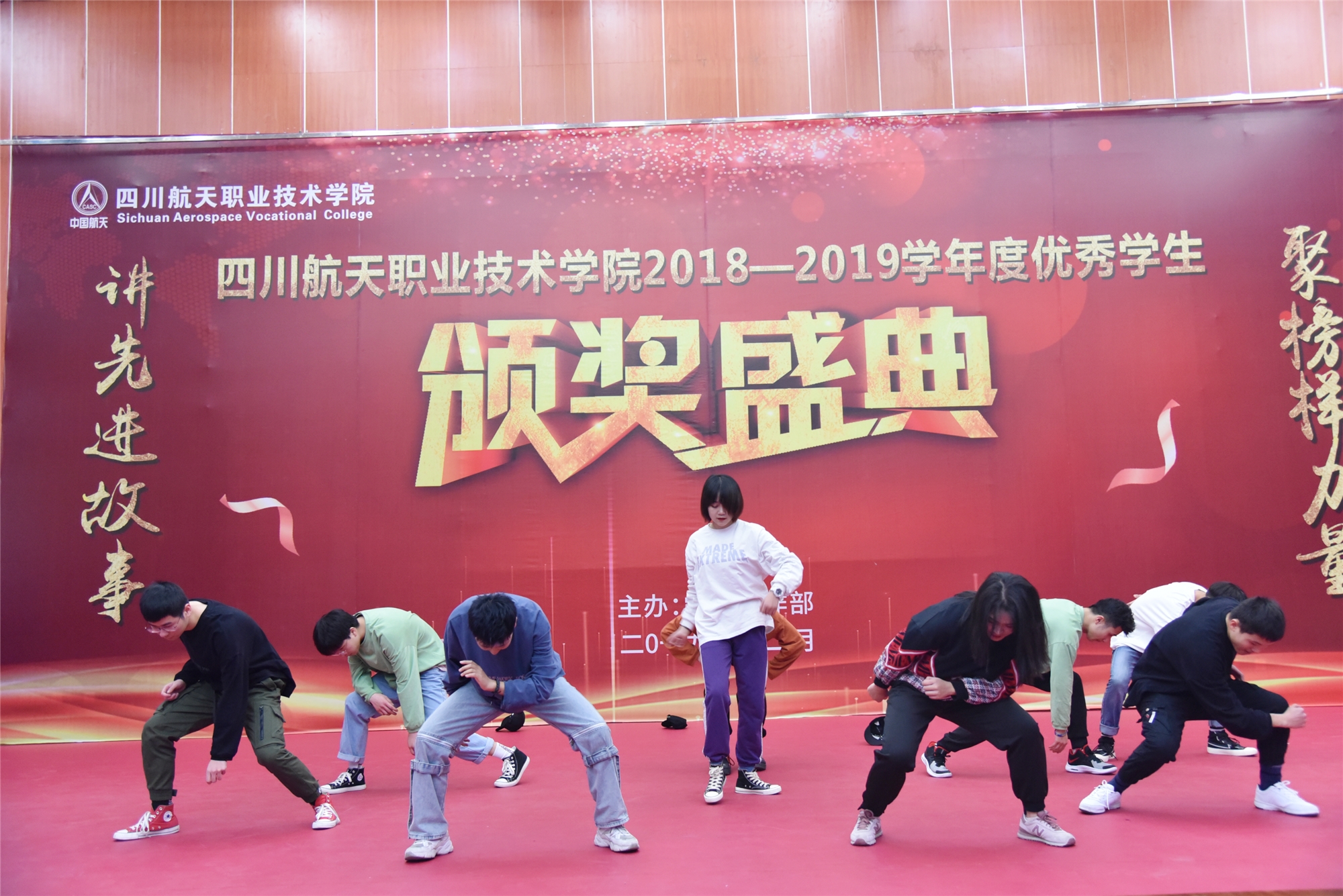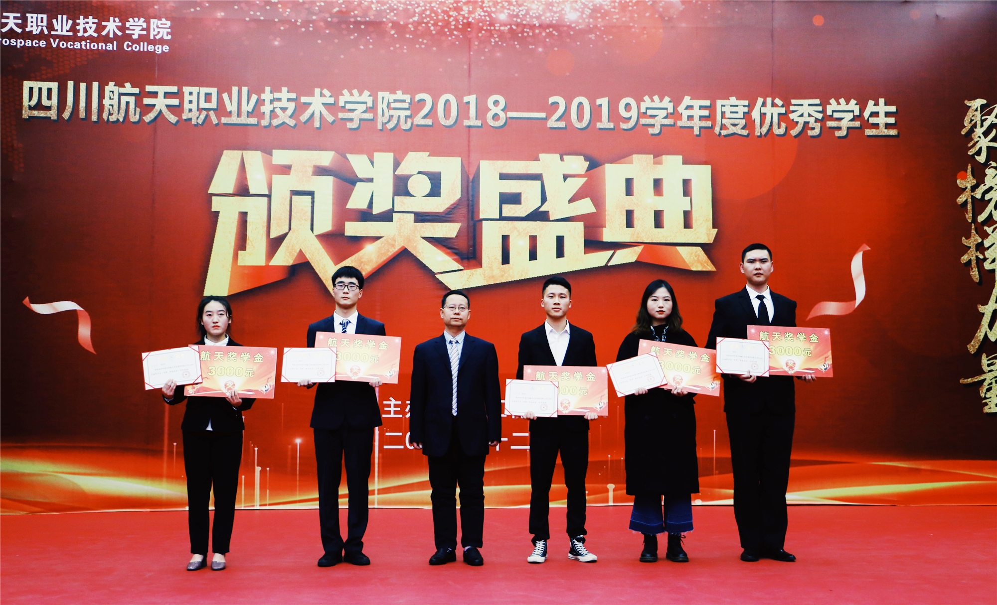 表彰大会在充满青春活力的《Popping》舞蹈中拉开序幕。颁奖过程中通过小视频展现了各位获奖者的风采,学院党委副书记、纪委书记秦勇,副院长刘宏道、夏华,党委书记黄茂才、院长刘家騑先后为三好学生、优秀学生干部、航天奖学金、国家励志奖学金、国家奖学金、先进班集体获得者颁奖。