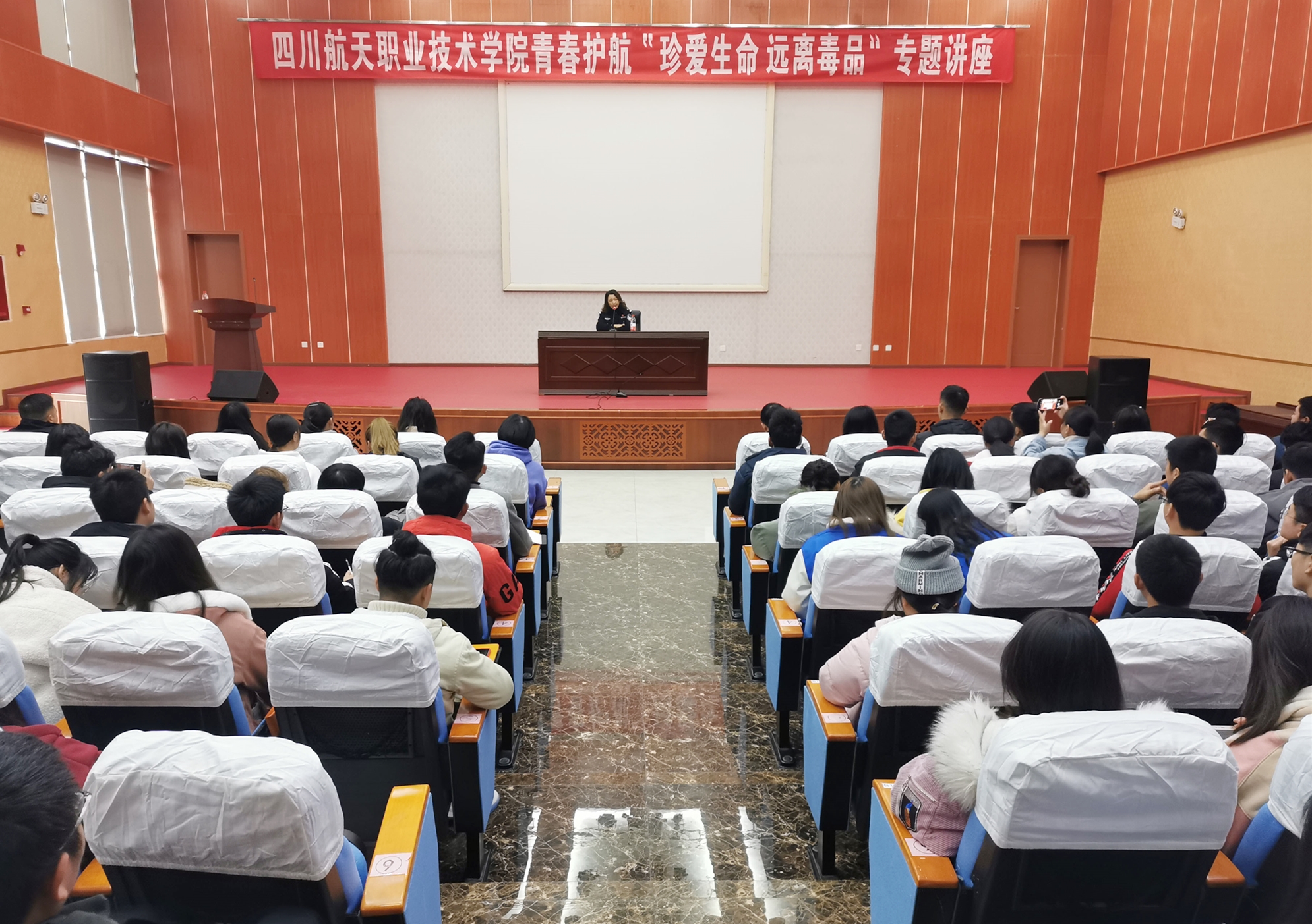 广汉市禁毒大队副大队长李娟娟在给同学讲解了什么是毒品、毒品与药品之间的区别后,并结合自身办案经历,通过大量真实案例告诉同学们毒品对个人、家人和社会的巨大危害,当前社会新型毒品的存在及传播方式,以及同学们在平时的社会交往中应该如何拒绝毒品诱惑、抵制毒品侵蚀。