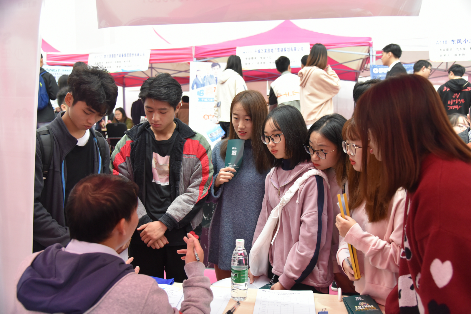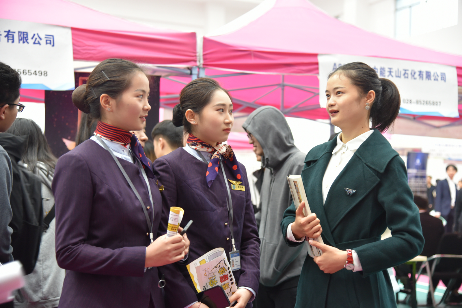 场外气温骤降,秋雨淅沥,由大学生职业规划协会、创新创业俱乐部、学院志愿者协会共同组成的志愿者服务队伍不辞辛苦的为用人单位和同学们提供贴心而温暖的服务。成为了双选会场上最靓丽的风景线