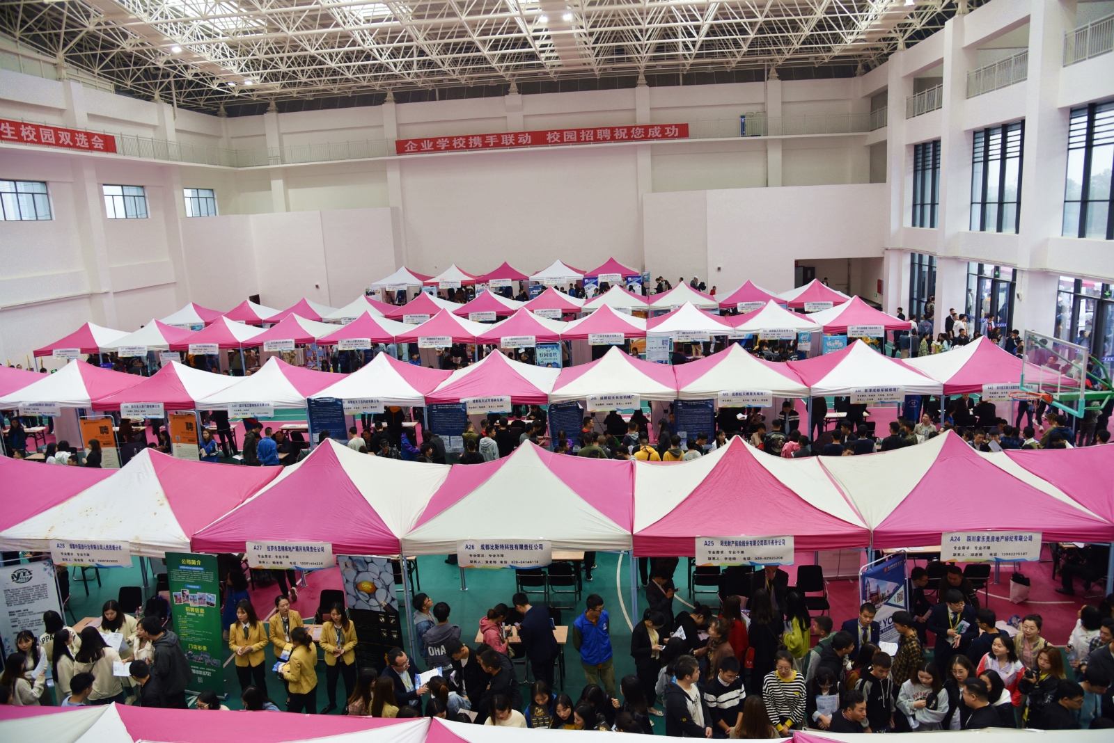 2019年10月24日,虽然秋风瑟瑟,阴雨绵绵,但是十大网投平台排名体育馆内人头攒动,热闹非凡。由学院就业处主办的“‘就’等你来、‘职’属于你”学院2020届毕业生大型双选会在此顺利进行,吸引了近200家用人单位,数千名我校应届毕业生的热情参与。数千用人岗位与毕业生的相互选择、大学积累与社会能力的互动、碰撞,打破了秋日的宁静,也为临近毕业的高校学子提供了一个展示与推销自己的舞台。
