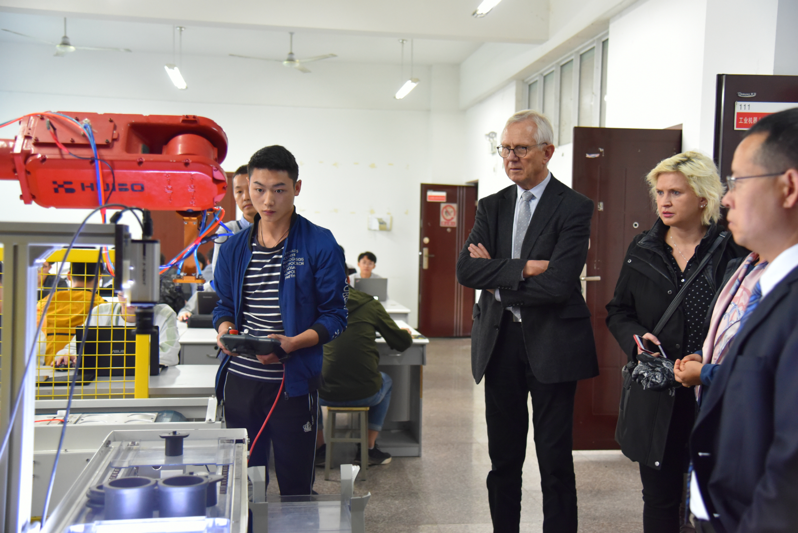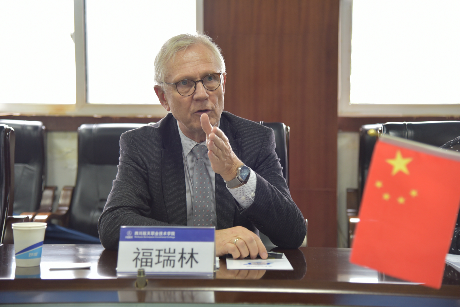 福瑞林先生一行先后参观了学院校史馆、机加、汽车、焊接、电子等实训中心,现场深入了解了学院的办学历史、重点实训室设置及校企合作模式。交流座谈会上,双方简要介绍各自基本概况和国际合作模式,双方就专业共建、课程引进、师资培训、学生海外培训就业等议题进行了深入探讨。会上,刘家騑院长与福瑞林先生共同签署了国际教育交流项目协议书。