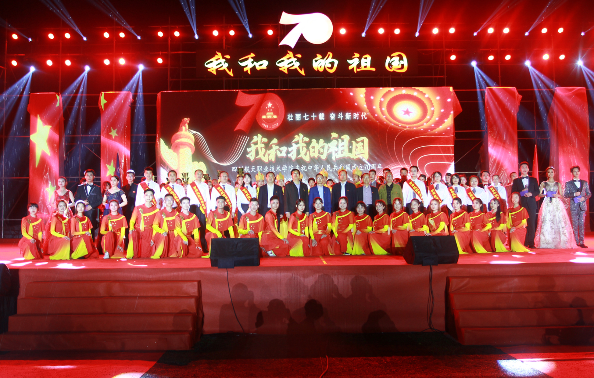 2019年10月15日晚,十大网投平台排名在学院在广汉校区隆重举行了“庆祝祖国成立七十周年暨迎新晚会”。学院院长刘家騑、党委书记黄茂才,副院长夏华、陈宇、刘宏道,党委副书记、纪委书记秦勇,各系部领导和老师们以及全体2019级新生参加了此次晚会。
