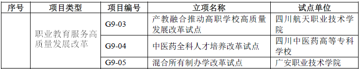 9月18日,四川省教育厅正式印发《四川省教育厅关于第二批省级教育体制机制改革试点项目立项的通知》(川教函[2019]461号),正式公布了第二批省级教育体制机制改革试点项目名单。经全省各高校申报推荐、教育厅组织专家评审等环节,学院申报的《产教融合推动高职学校高质量发展改革试点》项目成功入选,这是继2018年《“双师型”教师队伍管理机制改革试点》项目后第二次获得立项批准。