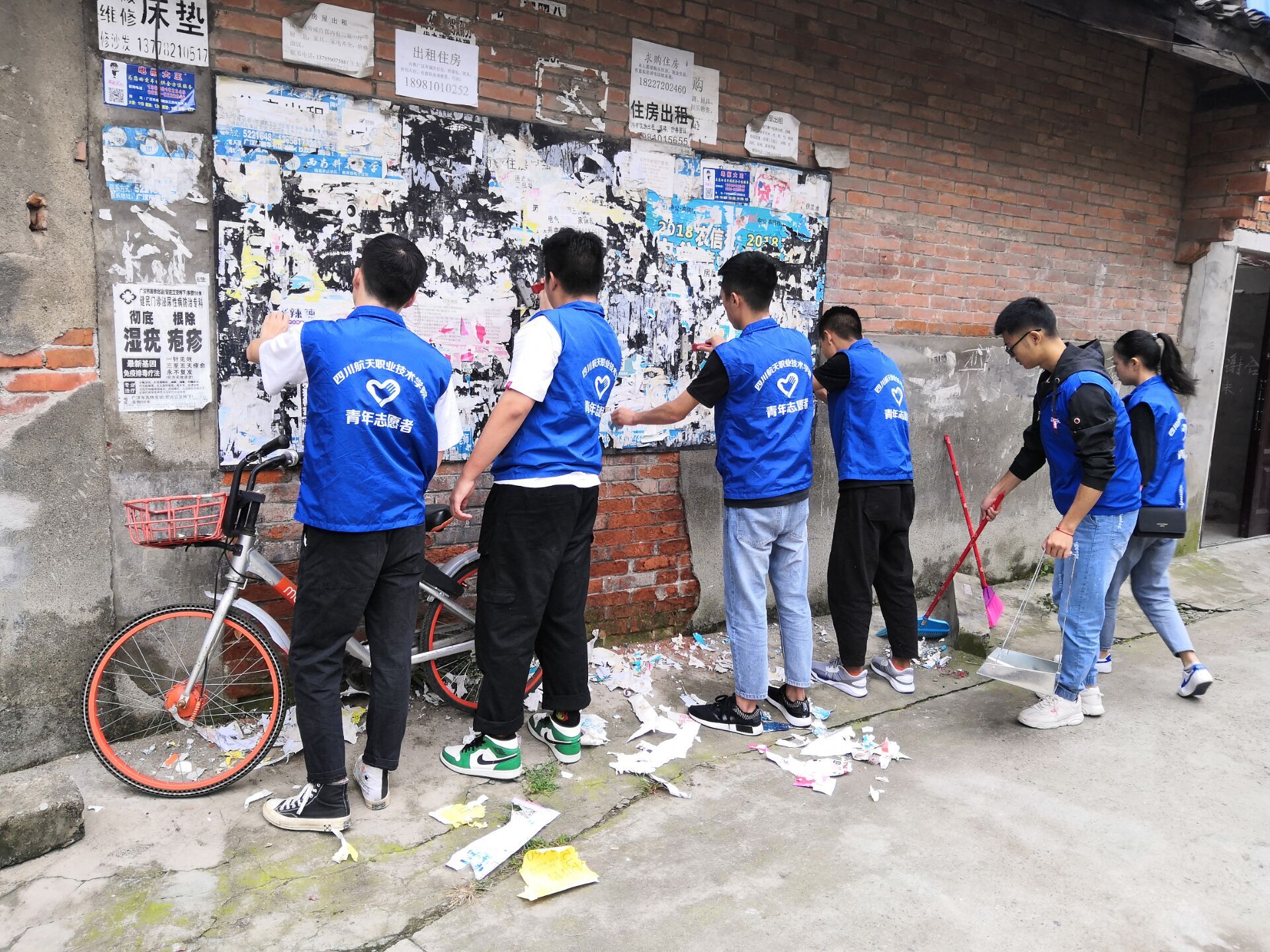 9月21日,学院青年志愿者协会80多名同学前往广汉市金领社区开展了以“青春志愿亮社区 干干净净迎国庆”为主题的志愿服务活动。在社区工作人员的带领下,志愿者们清理了隐藏在社区街道和巷道各个角落里的烟头及塑料垃圾,着重对贴在墙上的“牛皮癣”小广告进行处理。此外,在保洁间隙,同学们还来到社区老人公寓,与老人拉家常,为他们表演节目。