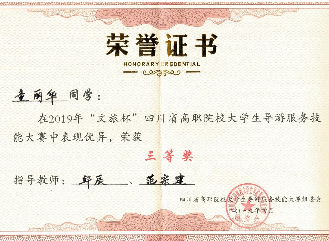 由四川省教育厅主办的2019年四川省高职院校导游服务技能大赛在成都举行,本届大赛为个人赛,113名选手均为全省开设旅游类专业的38所高职院校初赛选拔胜出的佼佼者,可谓是高手对决。大赛按照国家文旅融合最新战略、国赛最新要求和导游行业最新趋势,设计了理论测试、英语情景对话、抽选团型文化元素讲解、自选景点讲解和带团才艺运用五个环节,着重检验选手面对具体团型的灵活创作能力和各种带团情景下的应变能力。
