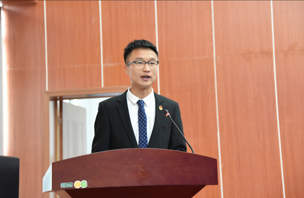 随后,学员代表王建谋上台发言。他代表全体学员郑重承诺,一定严格遵守青马班的各项规章制度,加强学习,不断提升。利用自身所学,带动身边同学弘扬青春正能量,发挥青马学员的榜样示范作用,为学校和社会发展共同添彩!