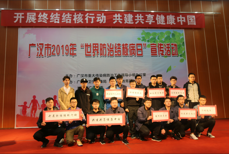 3月22日上午,由广汉市重大传染病防治工作领导小组办公室主办,广汉市卫生健康局、广汉市教育局、共青团广汉市委承办,广汉市疾病预防控制中心和学院共同协办的“开展终结结核活动,共建共享健康中国”-----广汉市2019年“世界结核病防治日”主题宣传活动在学院广汉校区学术报告厅隆重举行。
