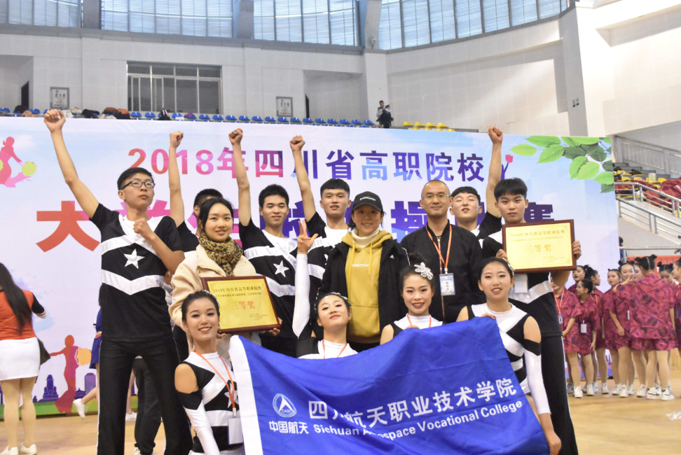 本次参加2018年四川省高等职业院校“大学生啦啦操比赛”活动由汽车工程系体育教研组组织,参赛的学院代表队在石景、常妙、唐小强三位老师的悉心指导下,经过一个多月的刻苦训练,竞技水平不断提升。决赛场上,队员们用默契的配合、精彩的动作展示了航院学子的青春风采,灿烂的笑容和饱满的热情更是感染了现场评委与观众,赢得了阵阵喝彩,最终取得了两项三等奖的好成绩。