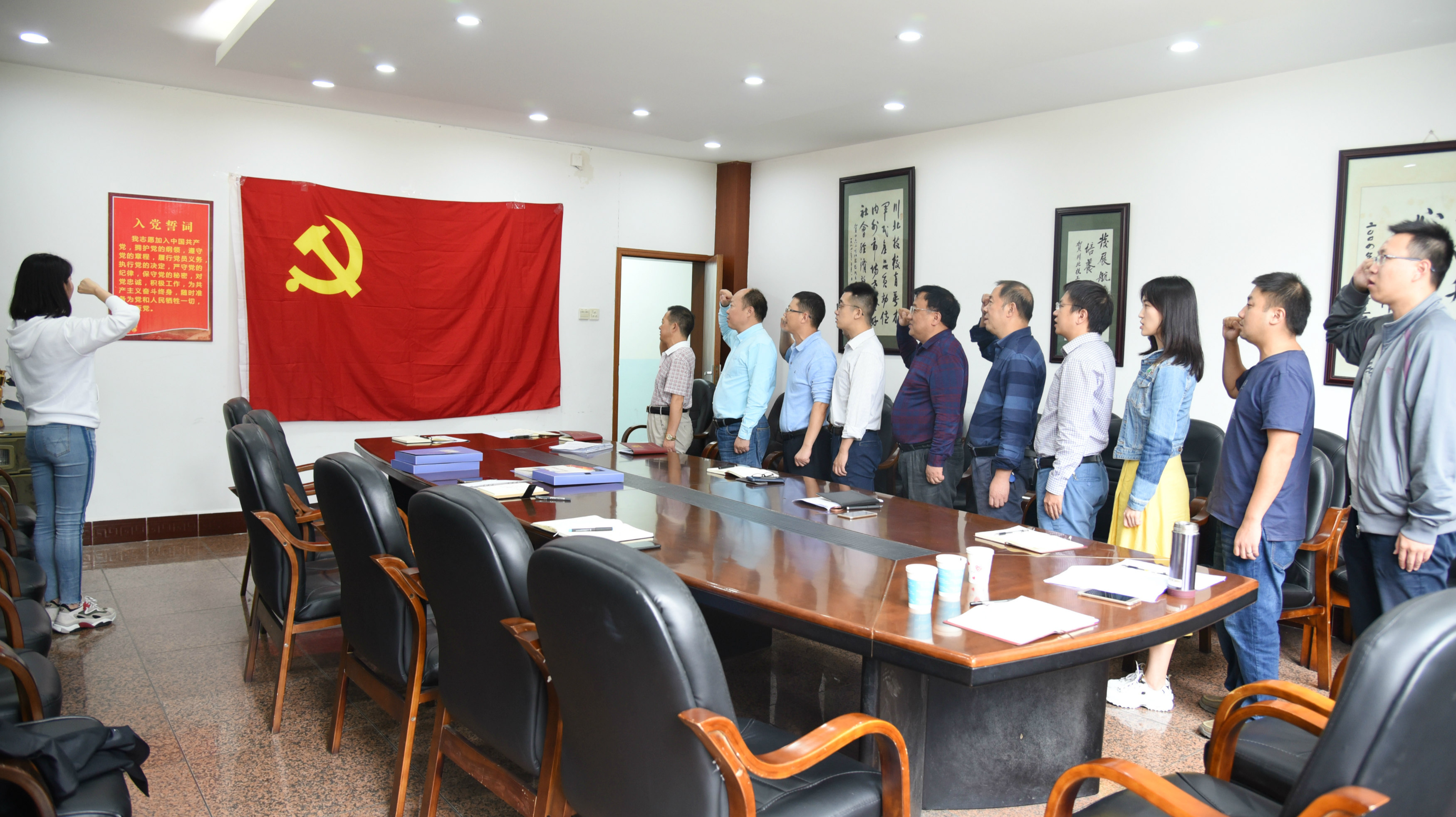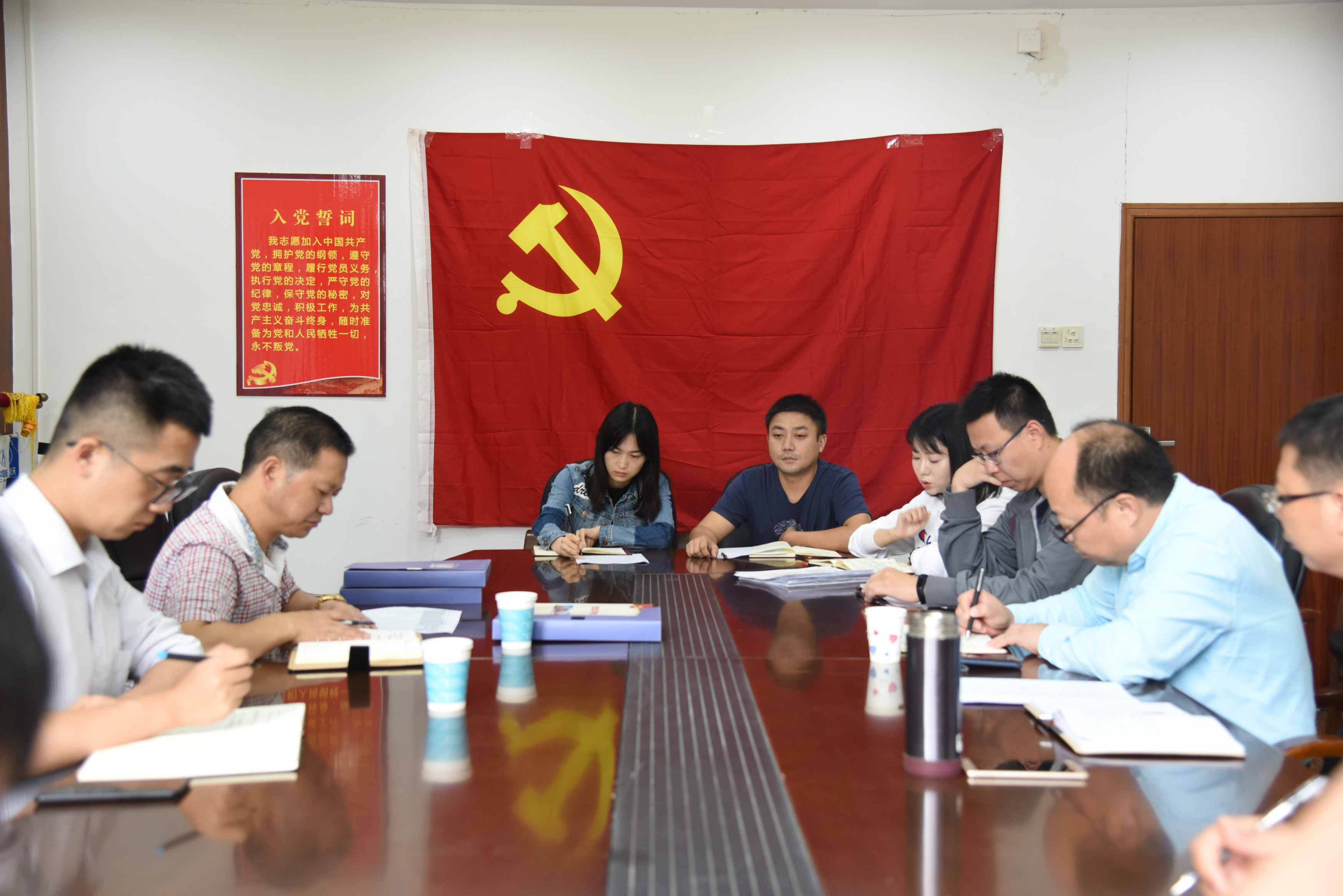会上,全体党员以集体宣誓的方式,开展了重温入党誓词的活动。通过宣誓,重温了入党时的庄严承诺和坚定决心,更有了奋起前行的动力,在自己的岗位上,做一个能坚持发挥先锋模范作用的共产党员。